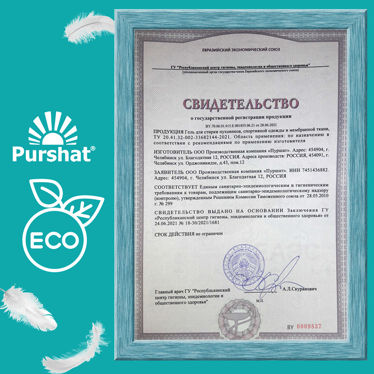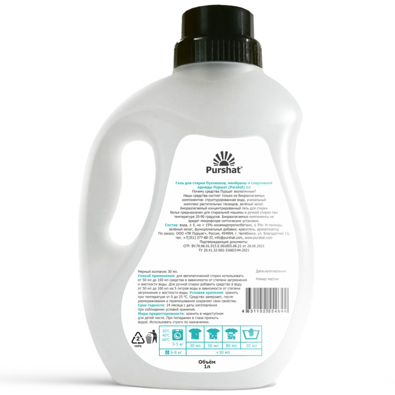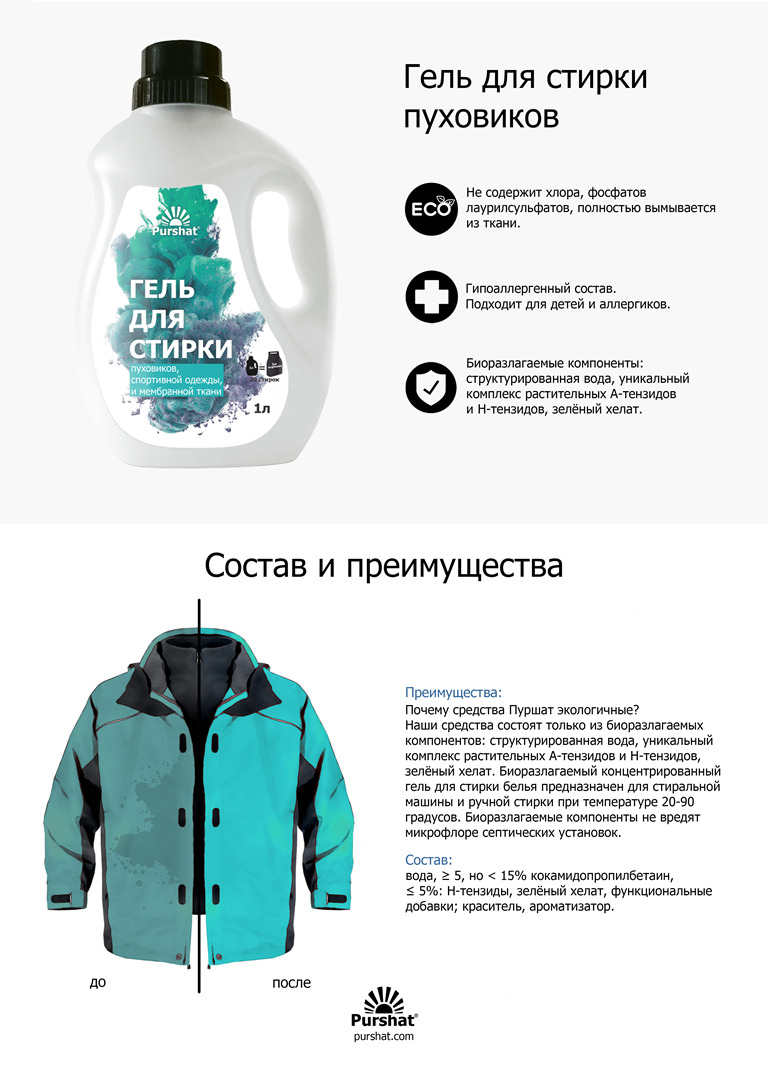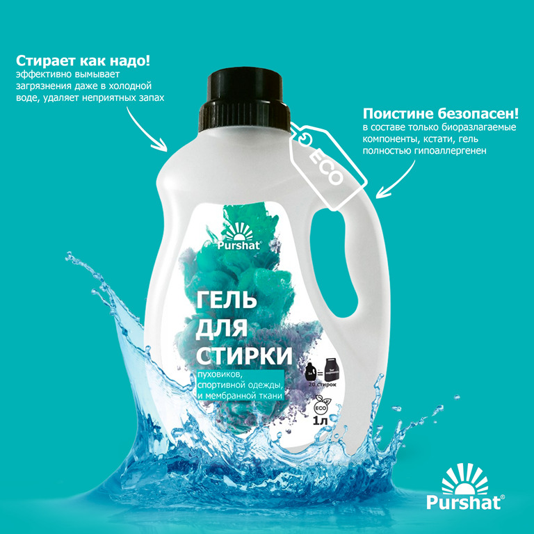 Гель для стирки пуховиков Пуршат для мембраны и спортивной одежды 1 л