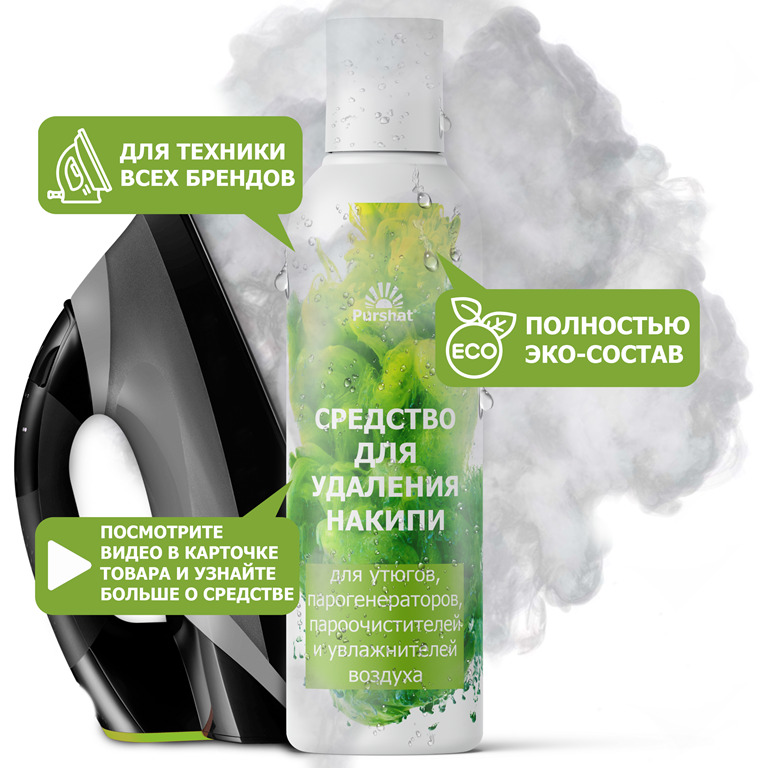 Средство от накипи для утюгов Пуршат парогенераторов и увлажнителей воздуха 250 мл