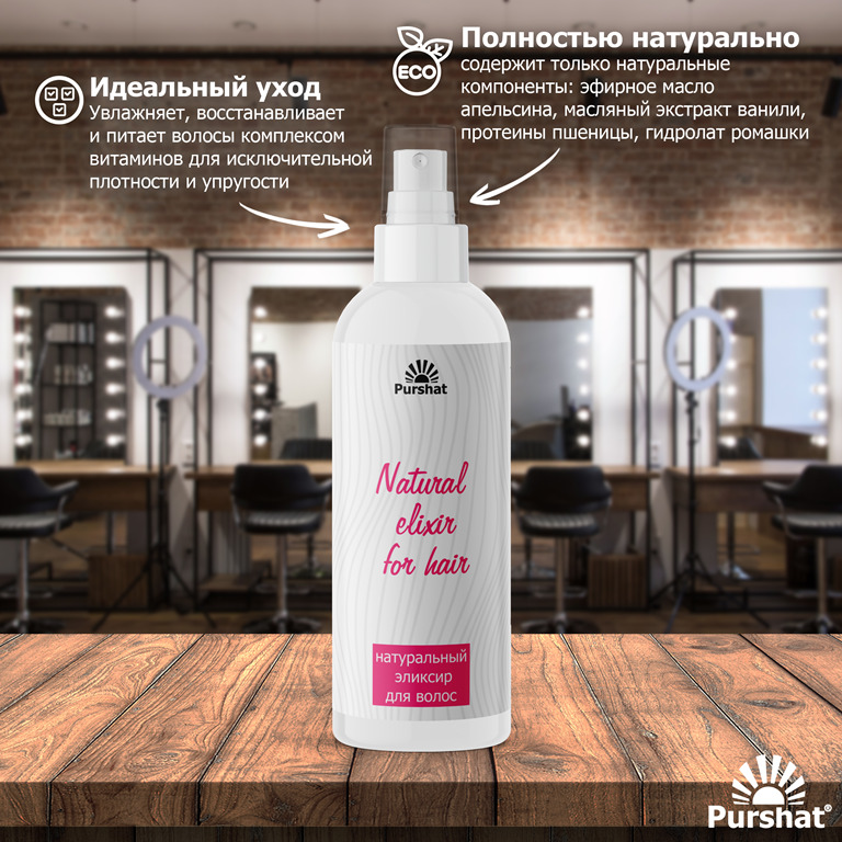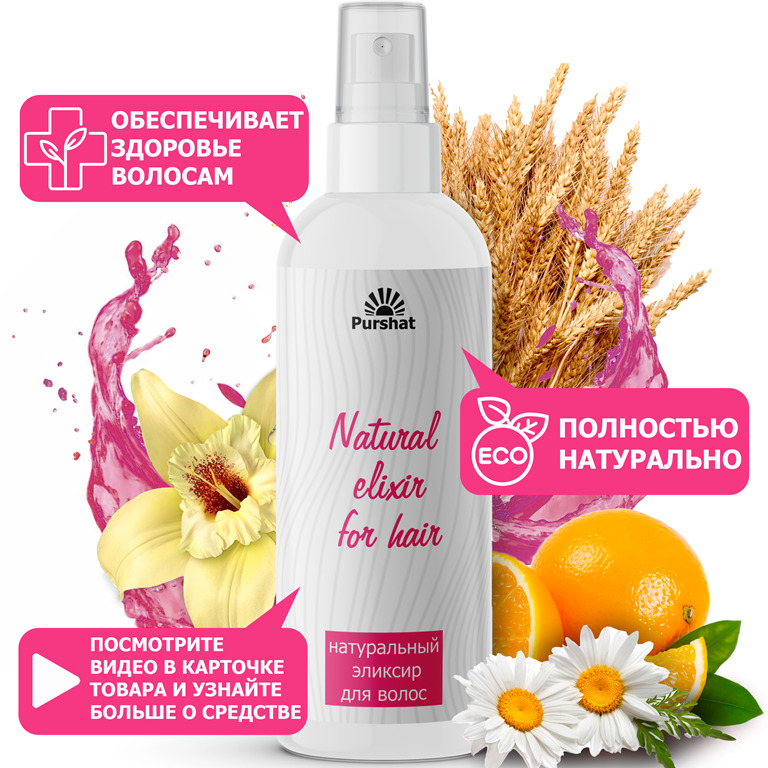 Purshat Эликсир спрей для волос многофункциональный 100% натуральный несмываемый Пуршат 200 мл