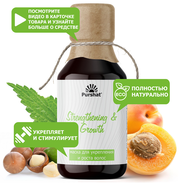 Purshat Маска для роста и от выпадения волос Укрепление и рост на натуральных маслах 100 мл