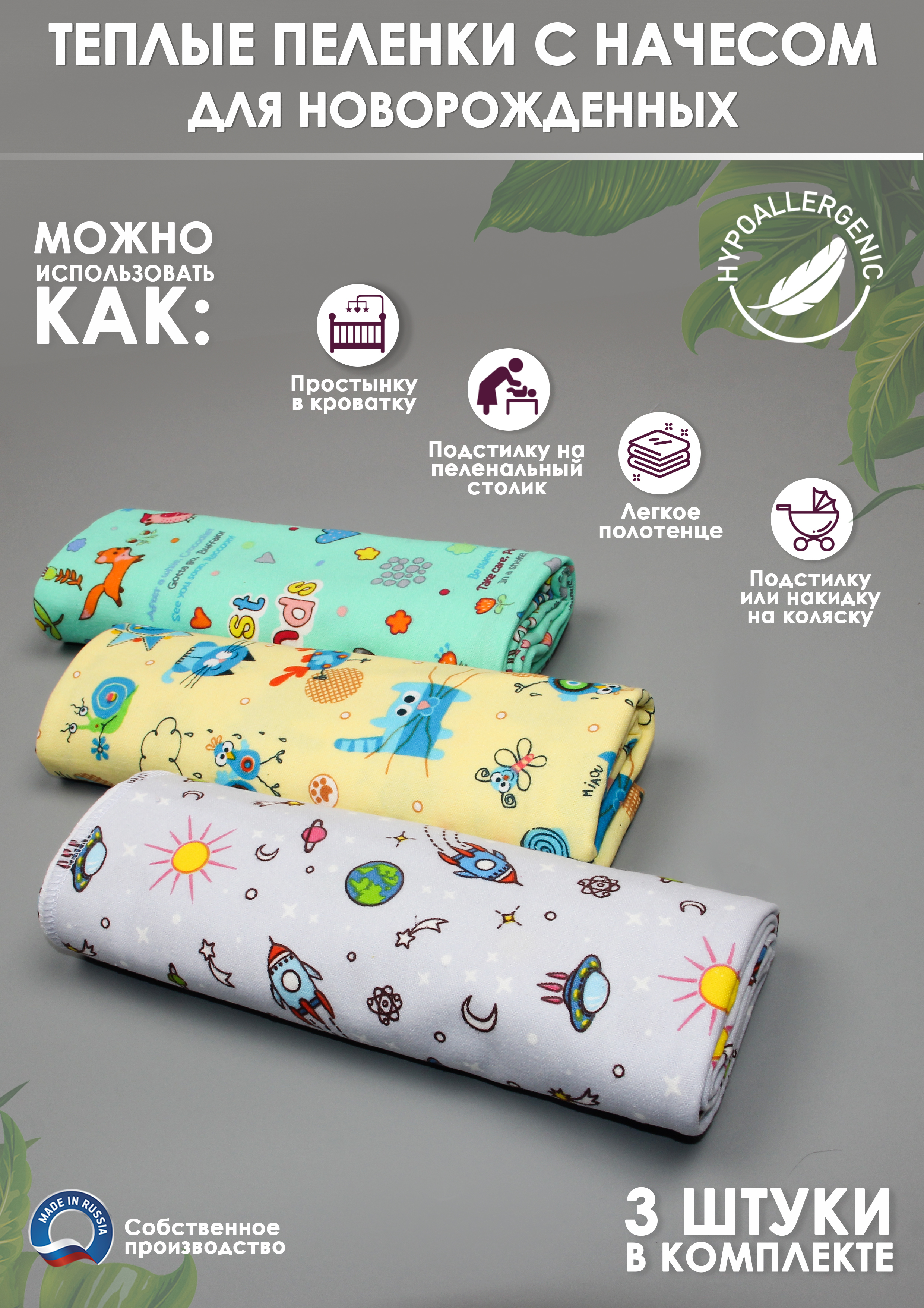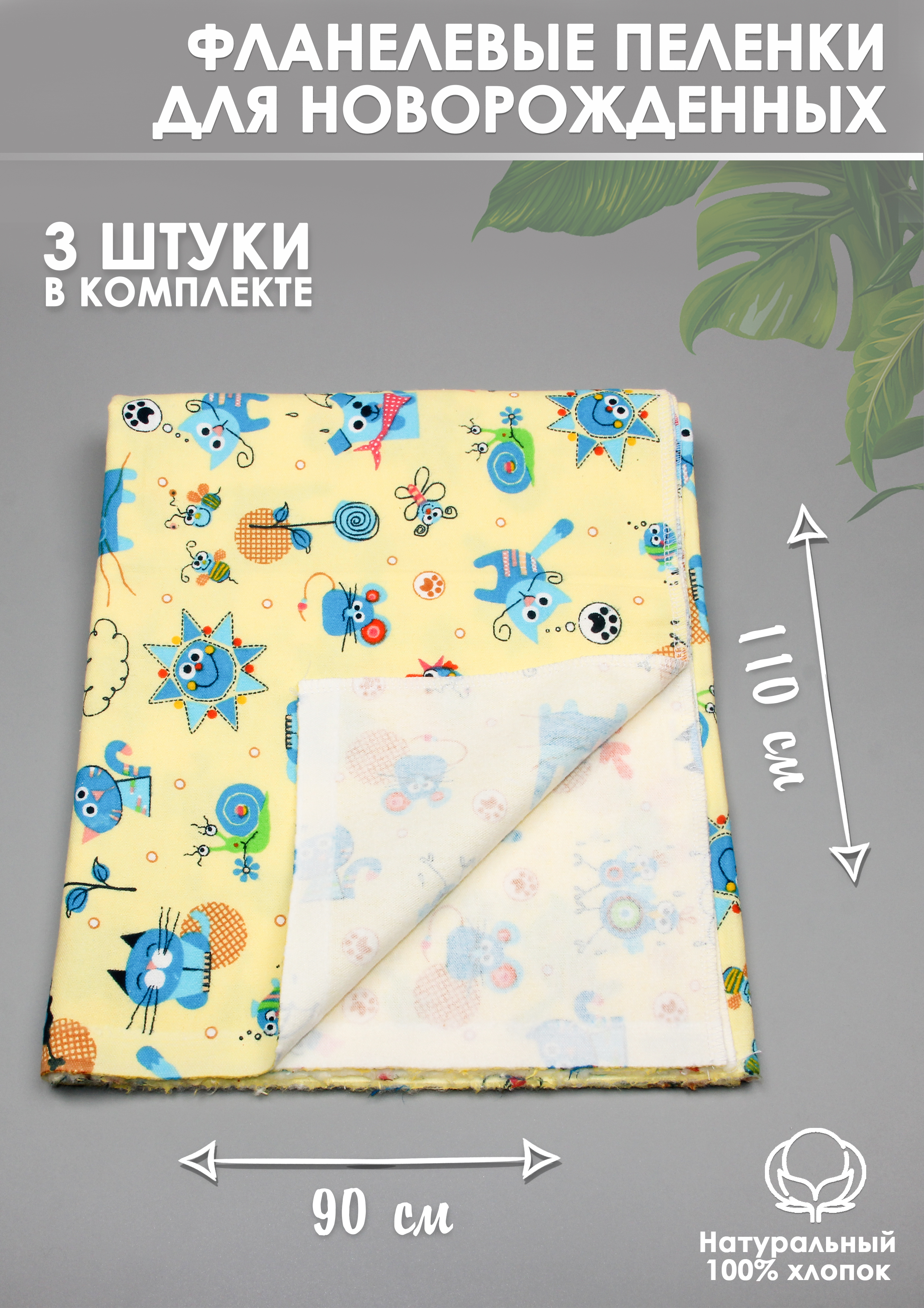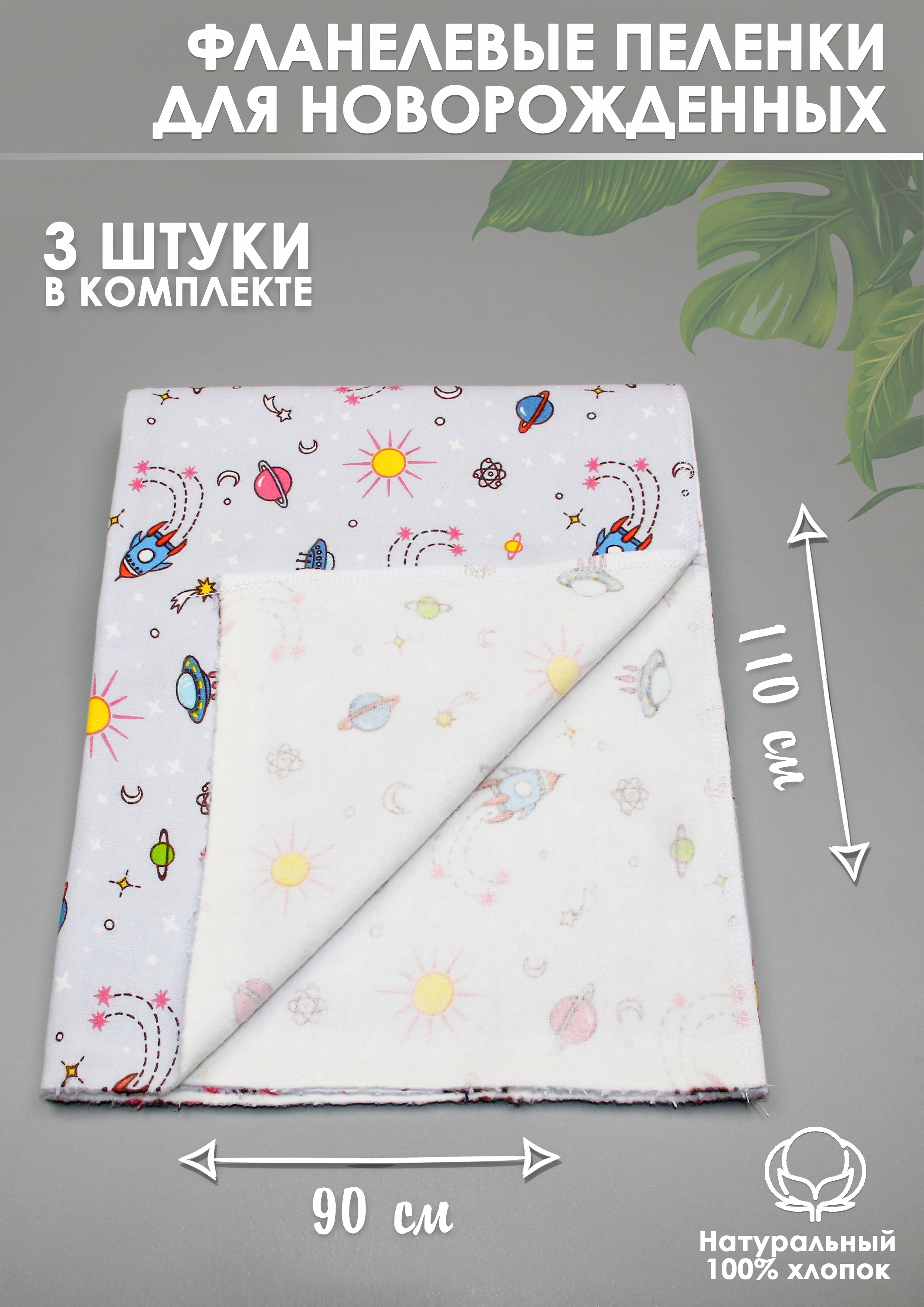 Пеленка текстильная Puzziki 90 х 110 см, Фланель, Трикотаж, 3 шт Новорожденка и малыши