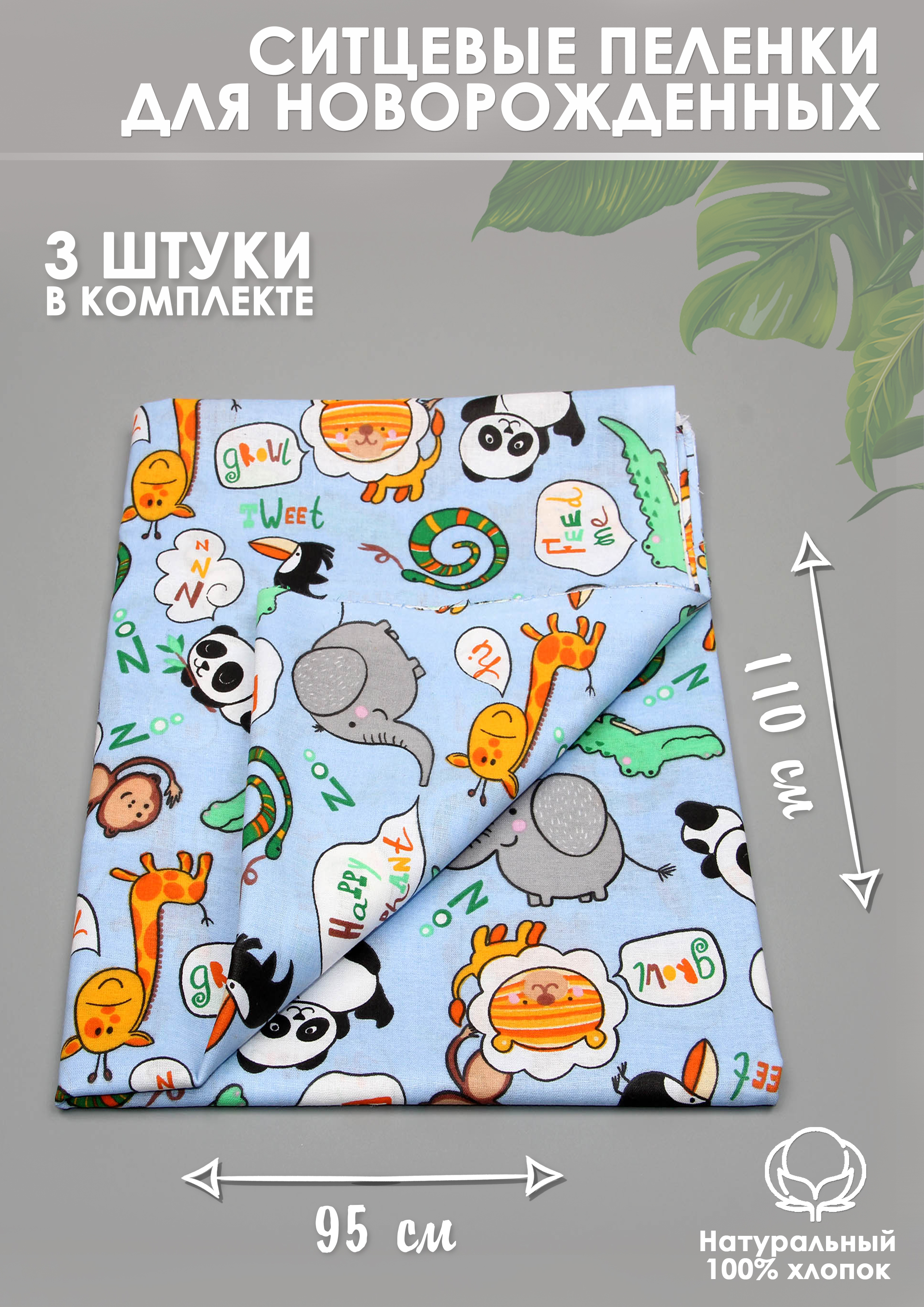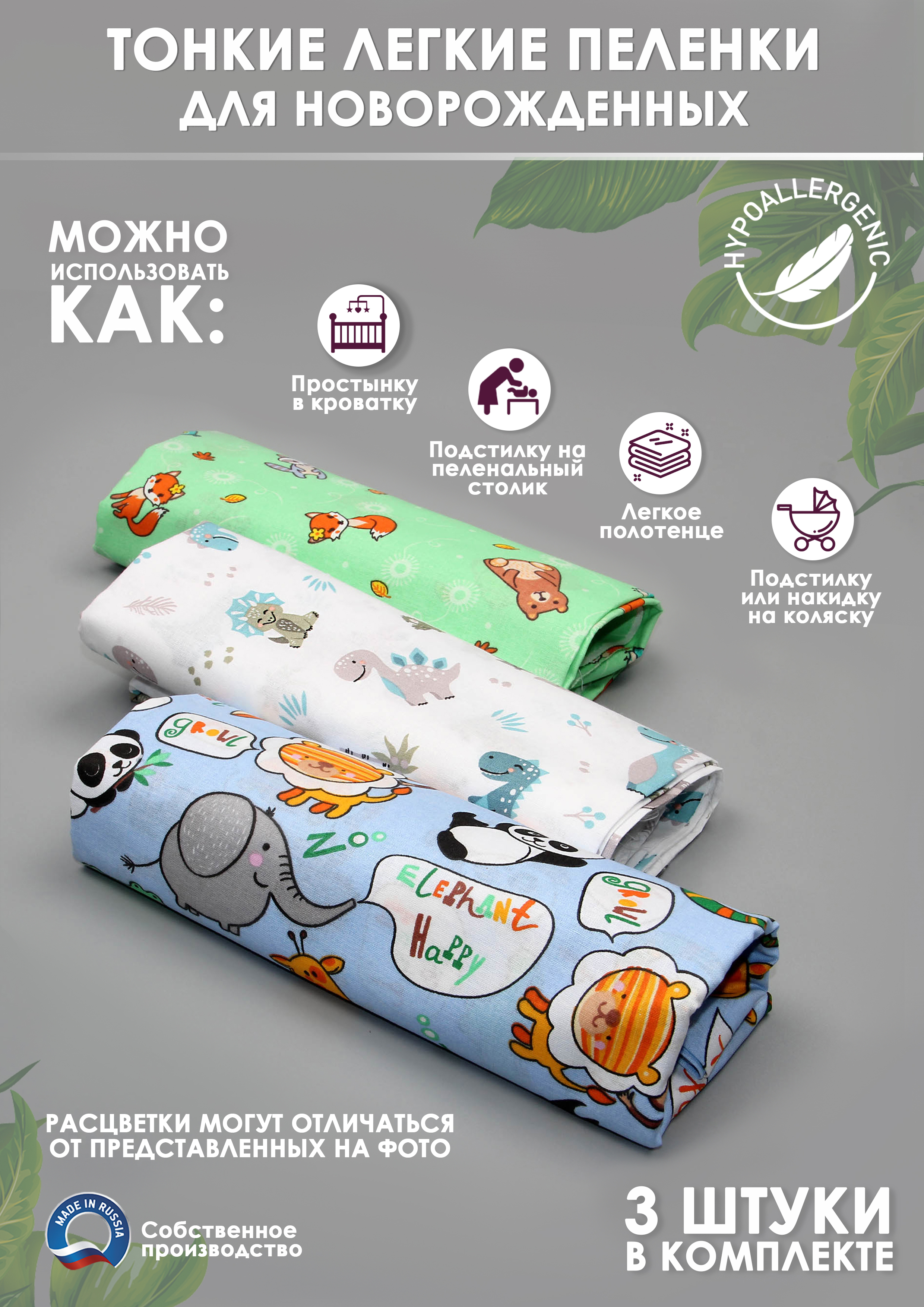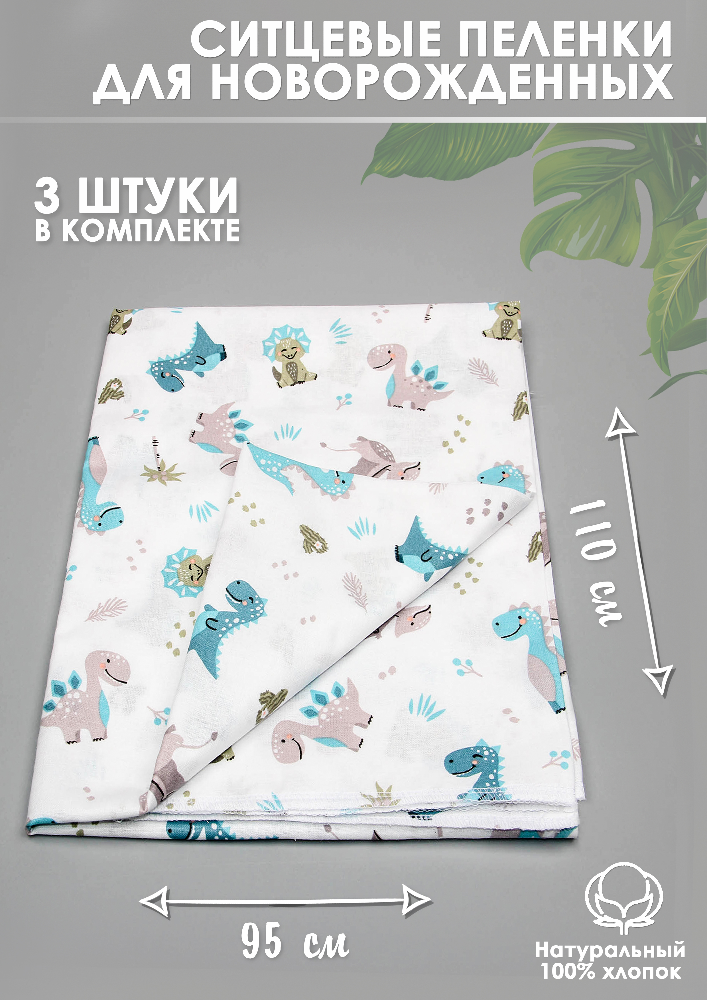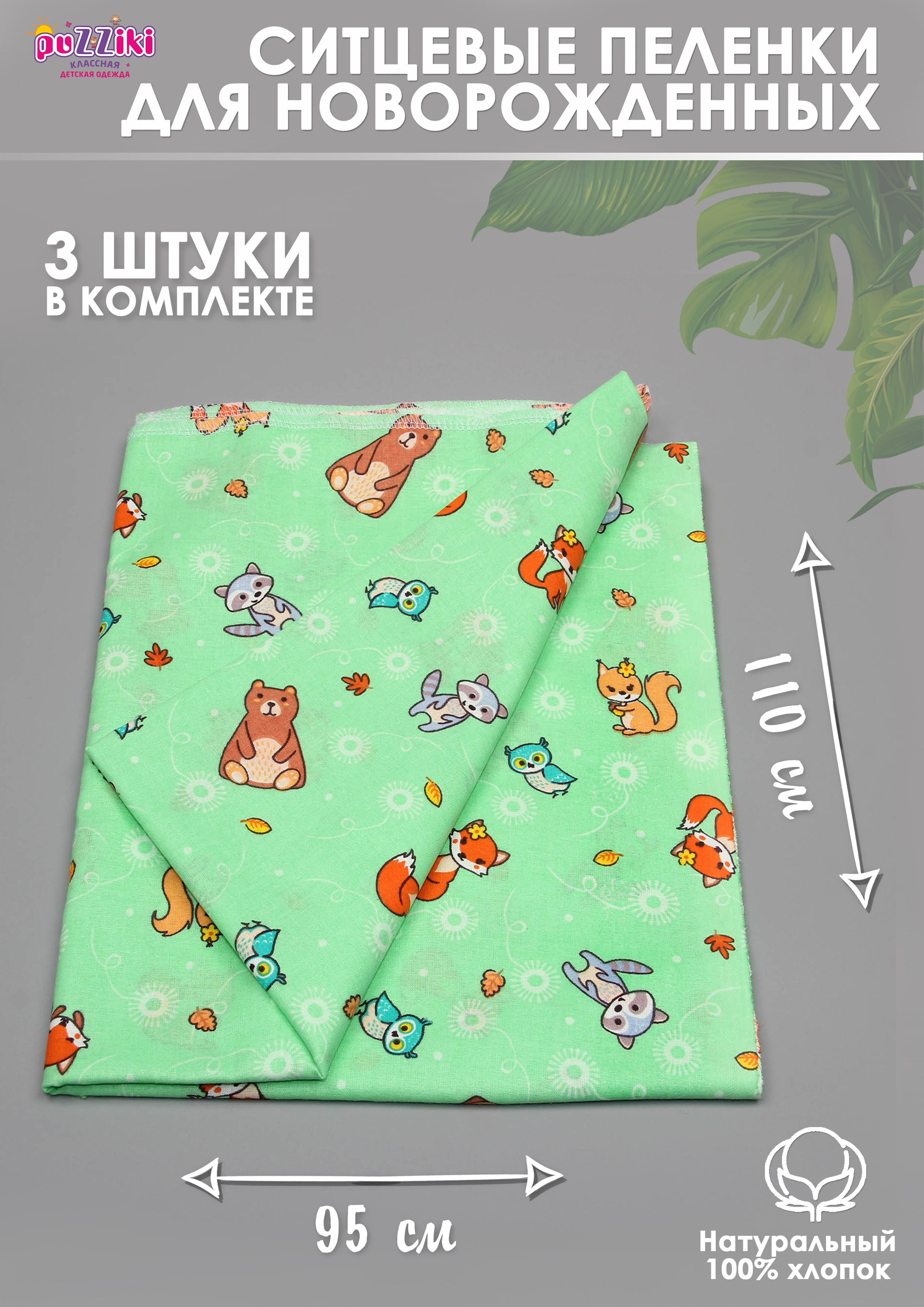 Пеленка текстильная Puzziki 95 х 115 см, Трикотаж, Хлопок, 3 шт Новорожденка и малыши