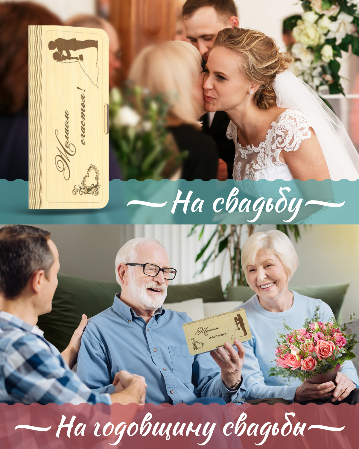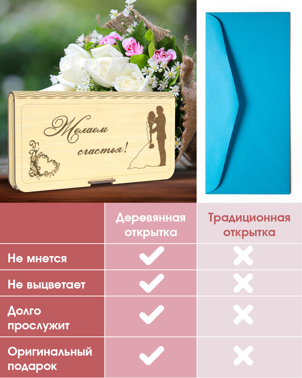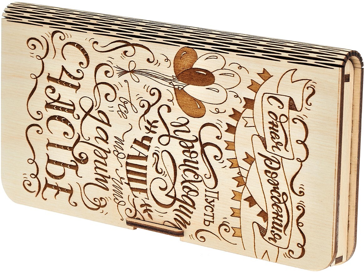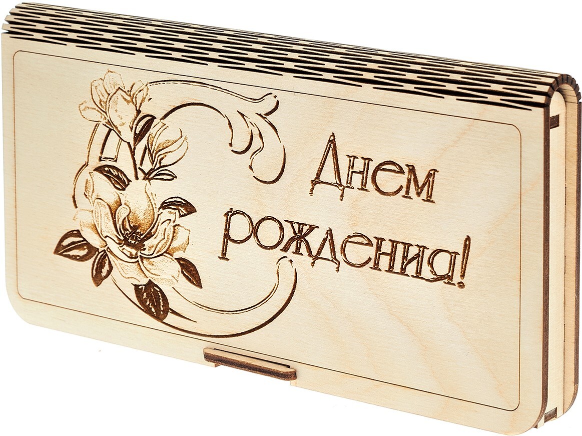 Деревянная открытка, подарок на день рождения, конверт для денег "С днем рождения"