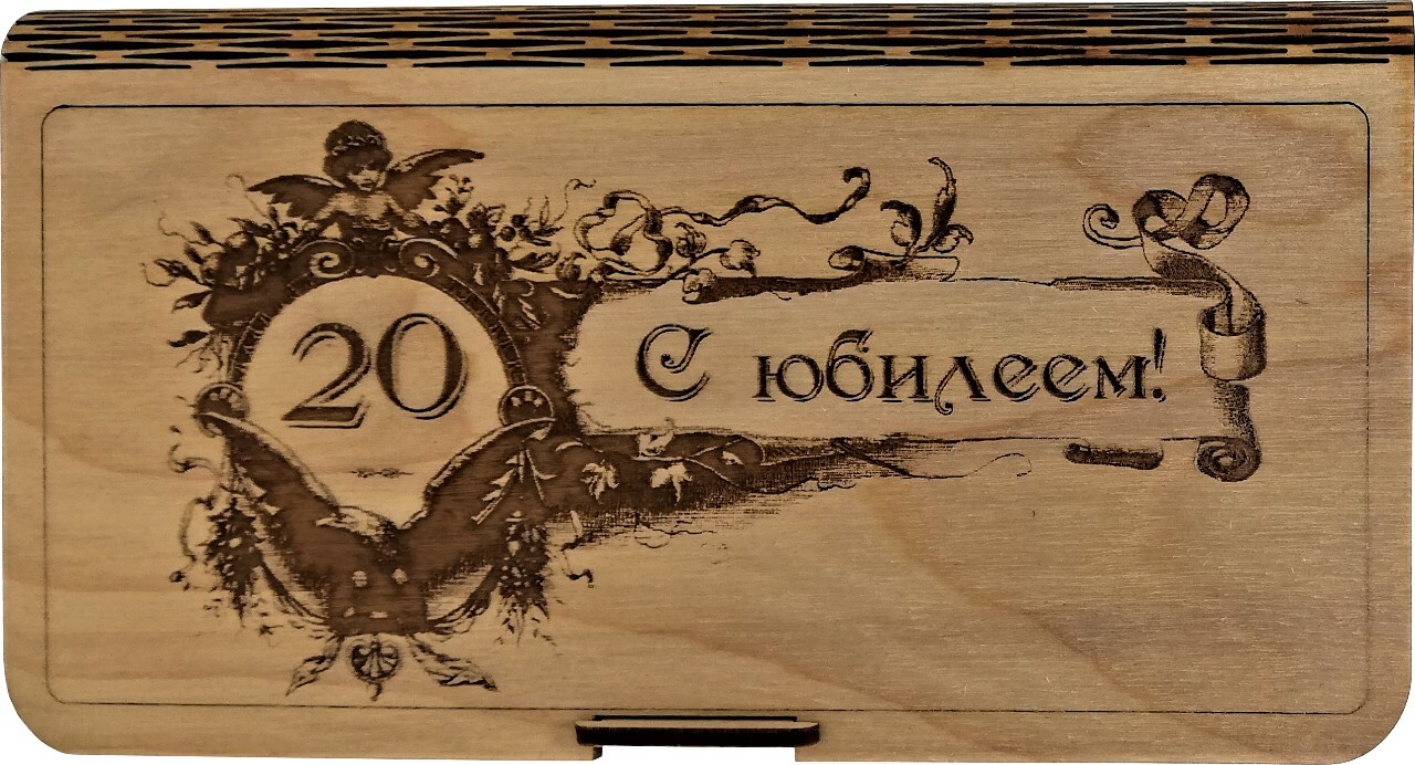 Деревянная открытка-конверт для денег "20 С юбилеем"