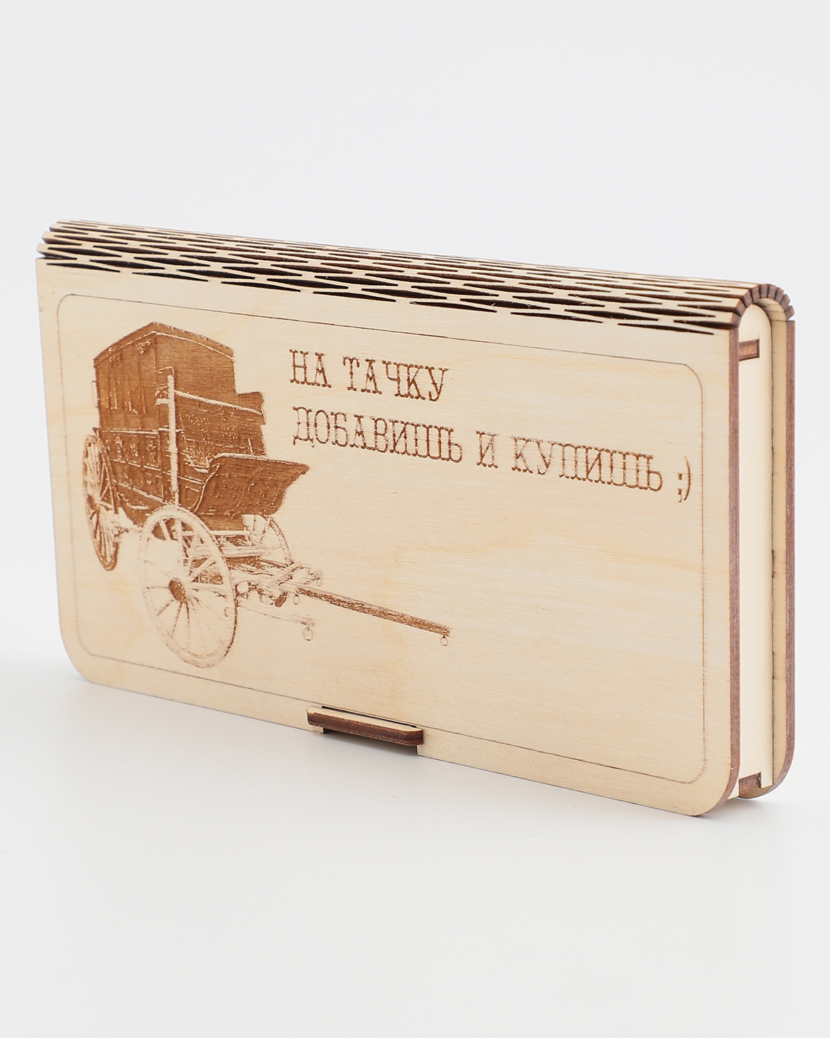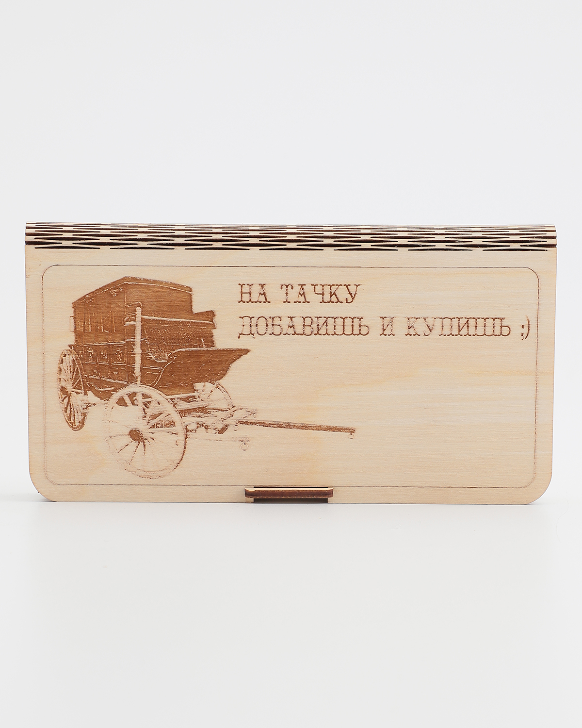 Деревянная открытка-конверт для денег "На тачку добавишь и купишь"