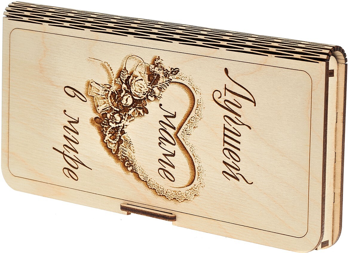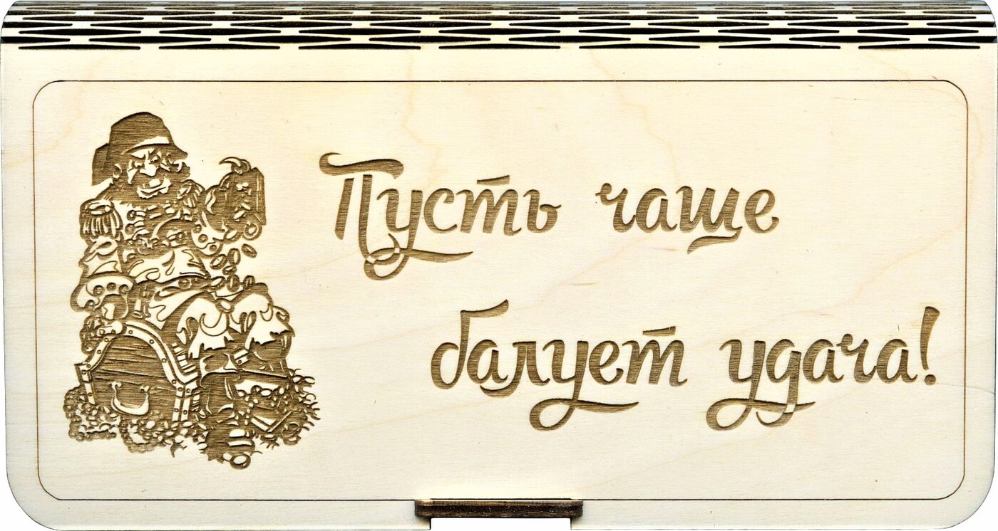 Деревянная открытка-конверт для денег "Пусть чаще балует удача!"