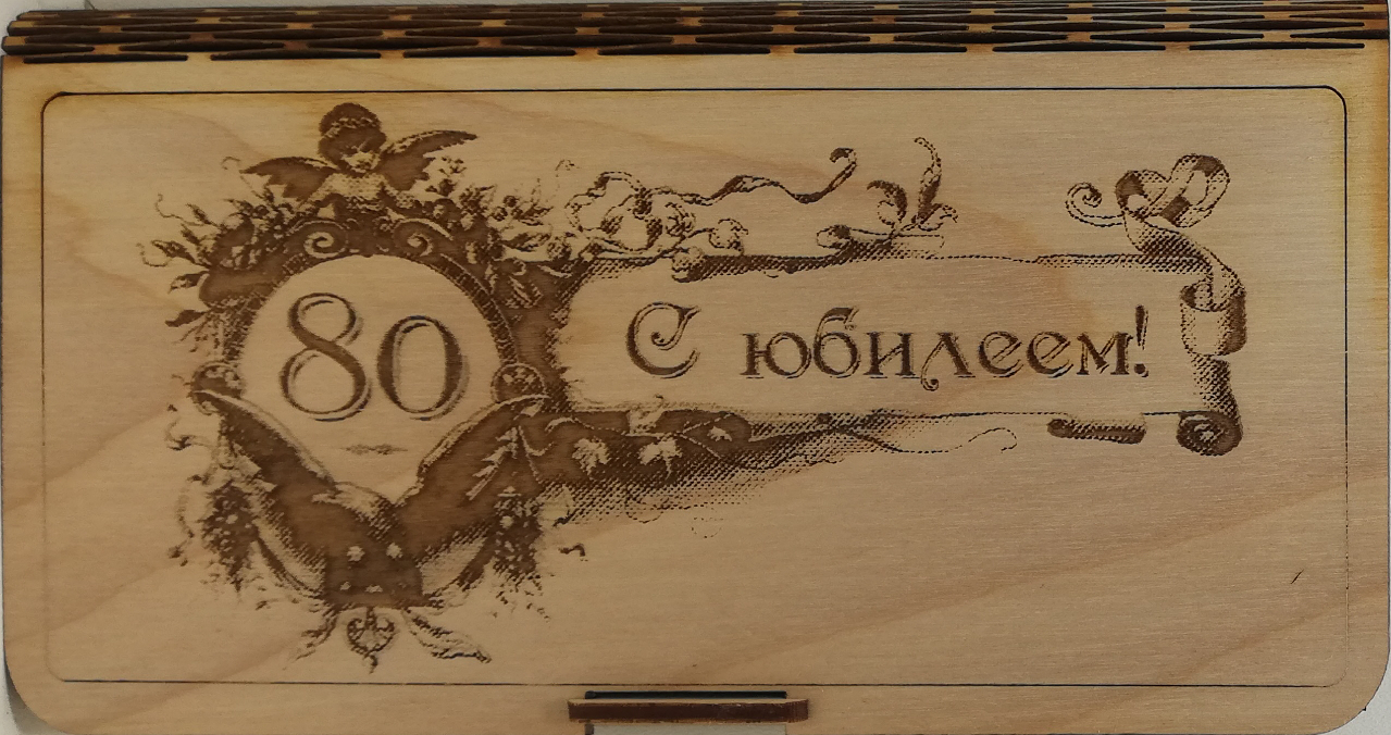 Деревянная открытка-конверт для денег "80 С юбилеем"