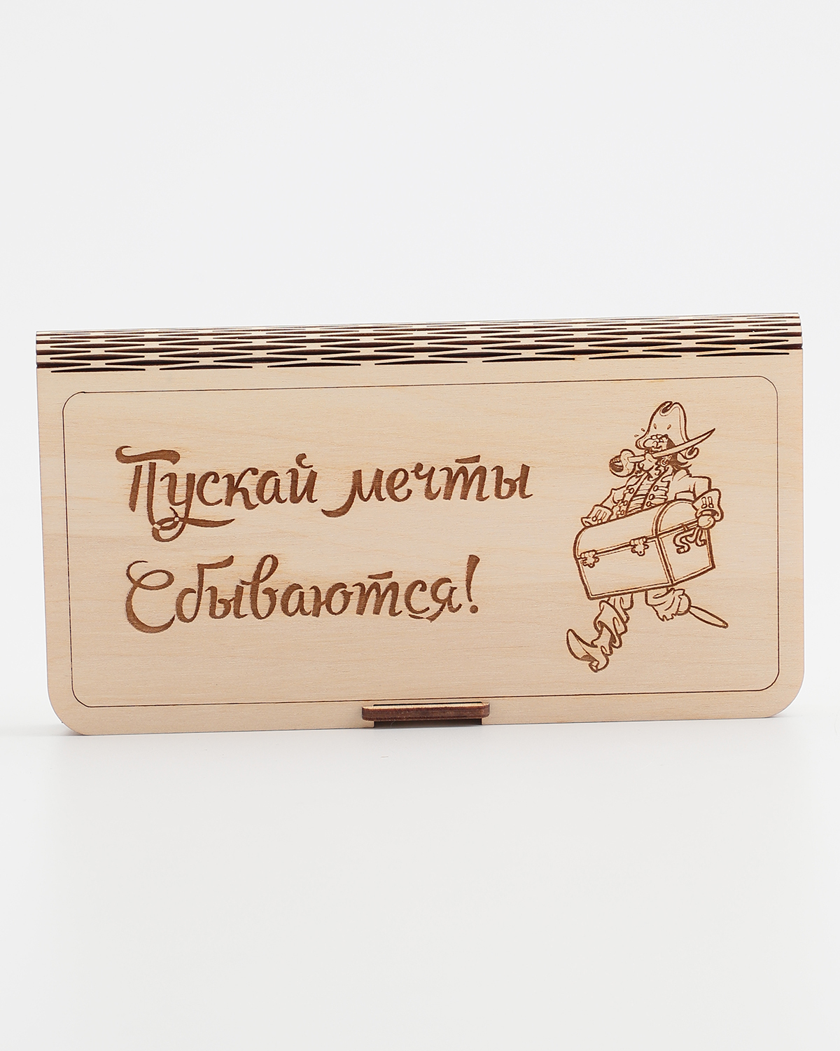 Деревянная открытка-конверт для денег "Пускай мечты сбываются!"