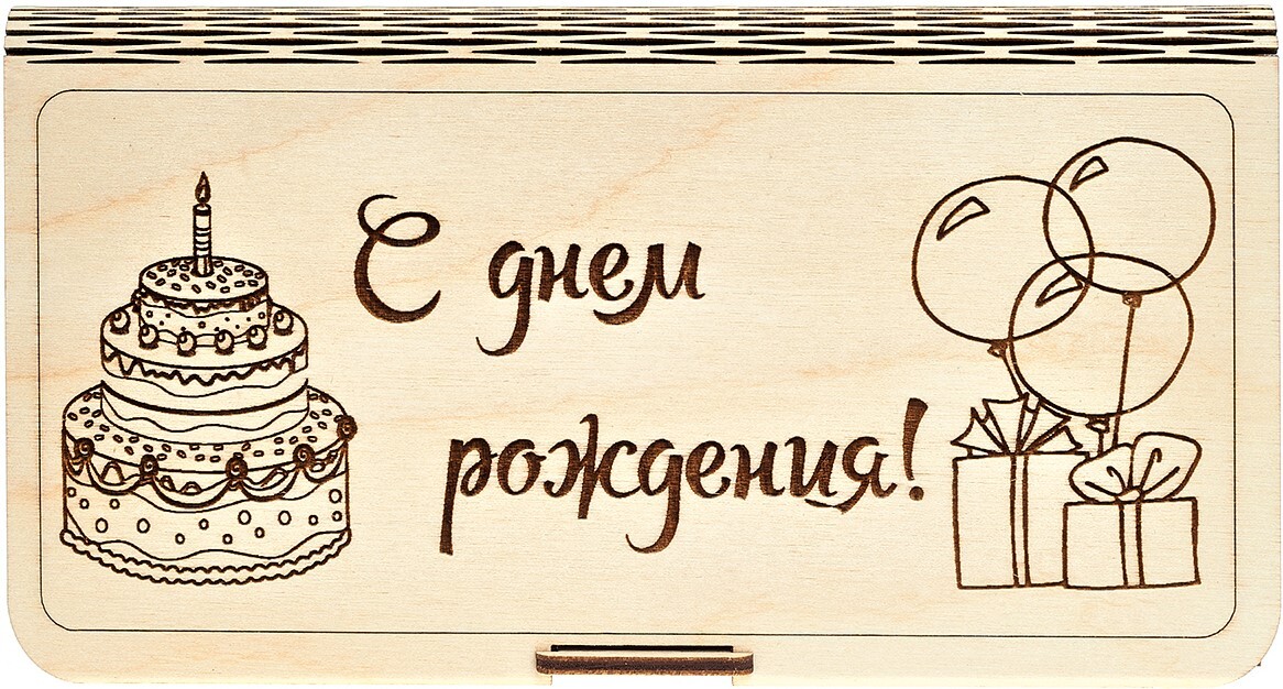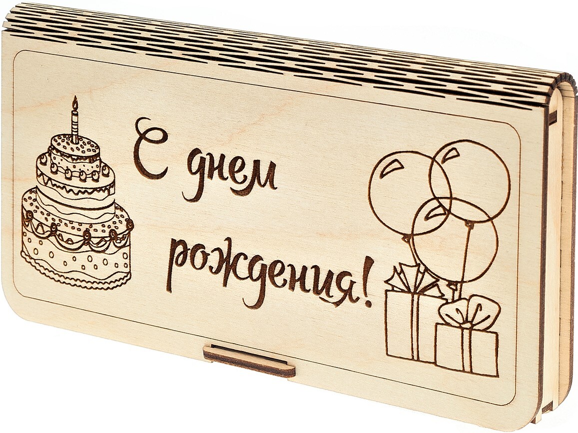 Деревянная открытка, подарок на день рождения, конверт для денег "С днем рождения"