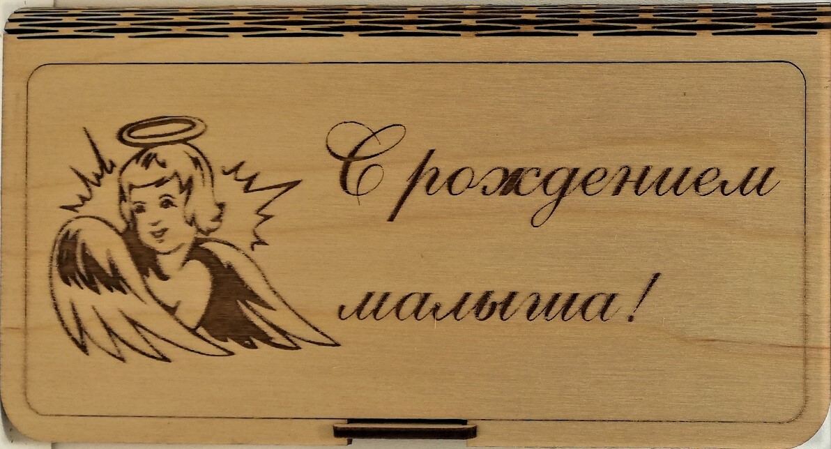 Деревянная открытка-конверт для денег "С рождением малыша!"