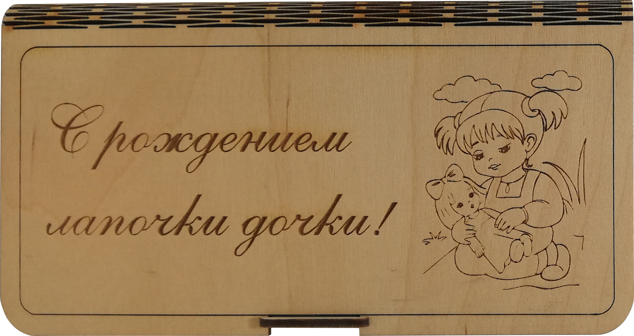 Деревянная открытка-конверт для денег "С рождением лапочки дочки"