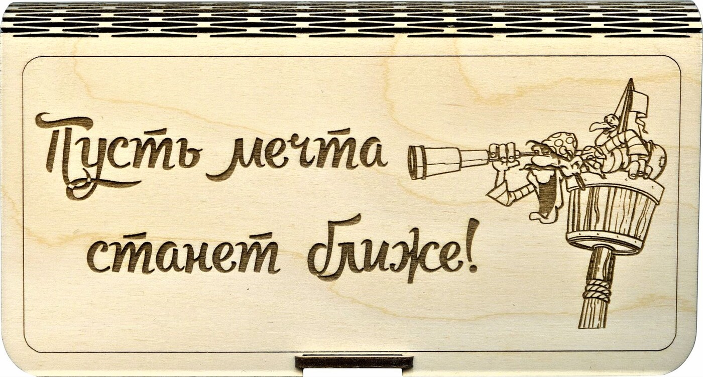 Деревянная открытка-конверт для денег "Пусть мечта станет ближе!"