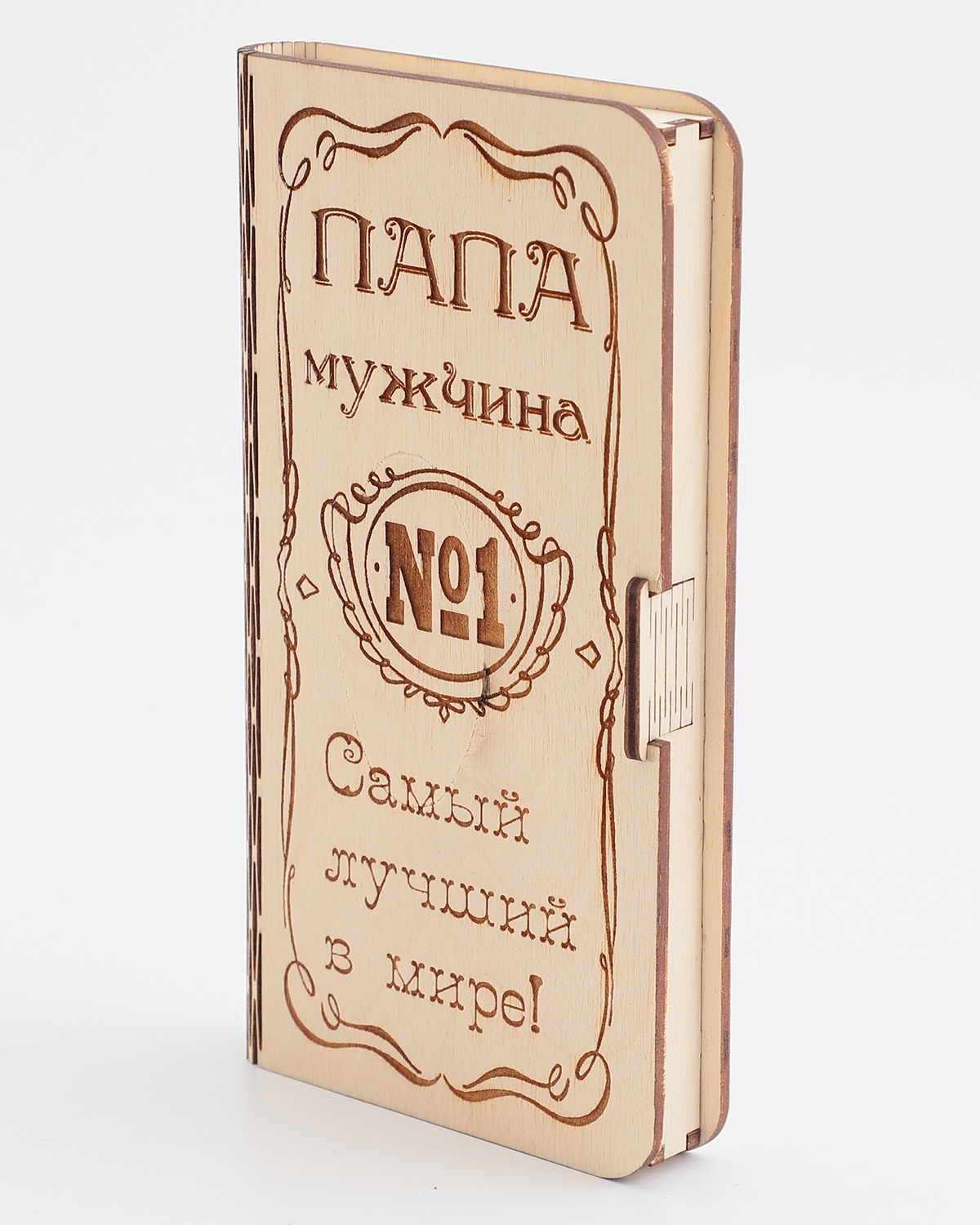 Деревянная открытка-конверт для денег "Папа мужчина №1"