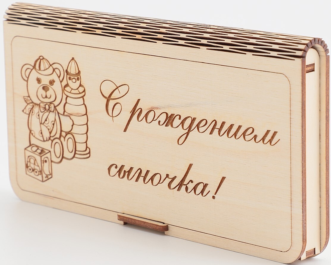Деревянная открытка-конверт для денег "С рождением сыночка"