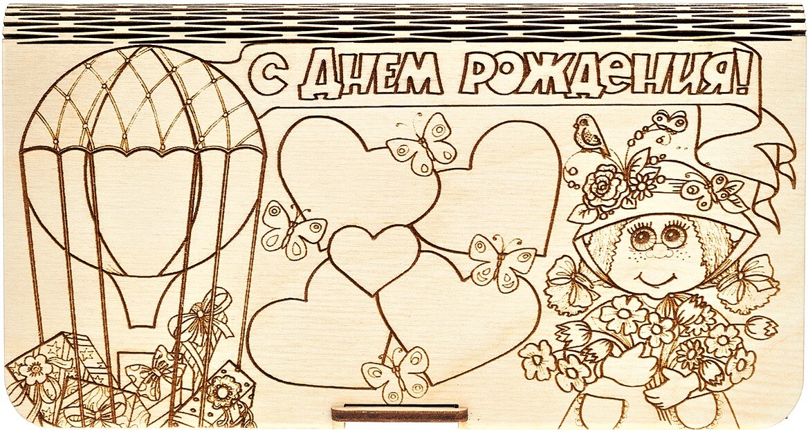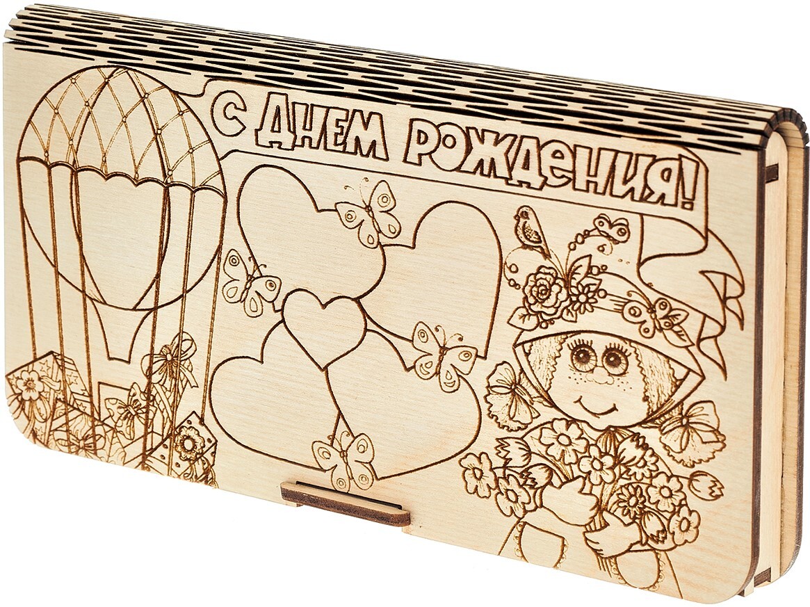 Деревянная открытка, подарок на день рождения, конверт для денег "С днем рождения"