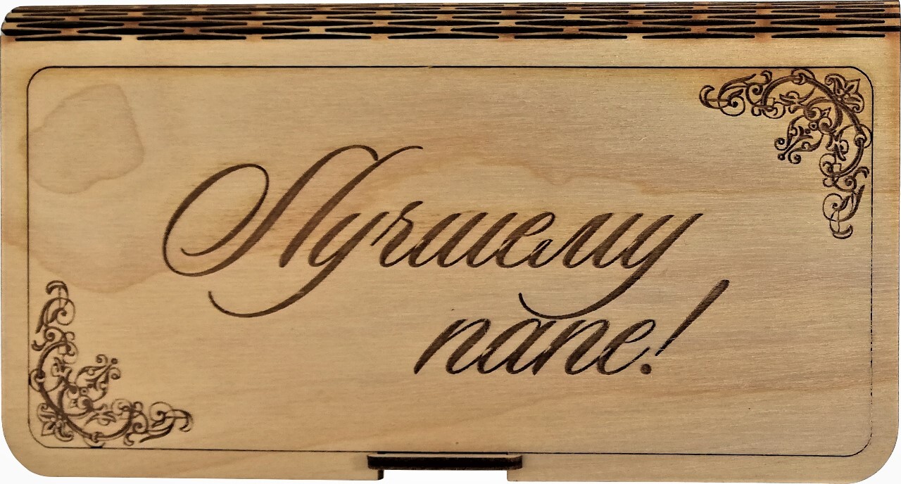 Деревянная открытка-конверт для денег "Лучшему папе"