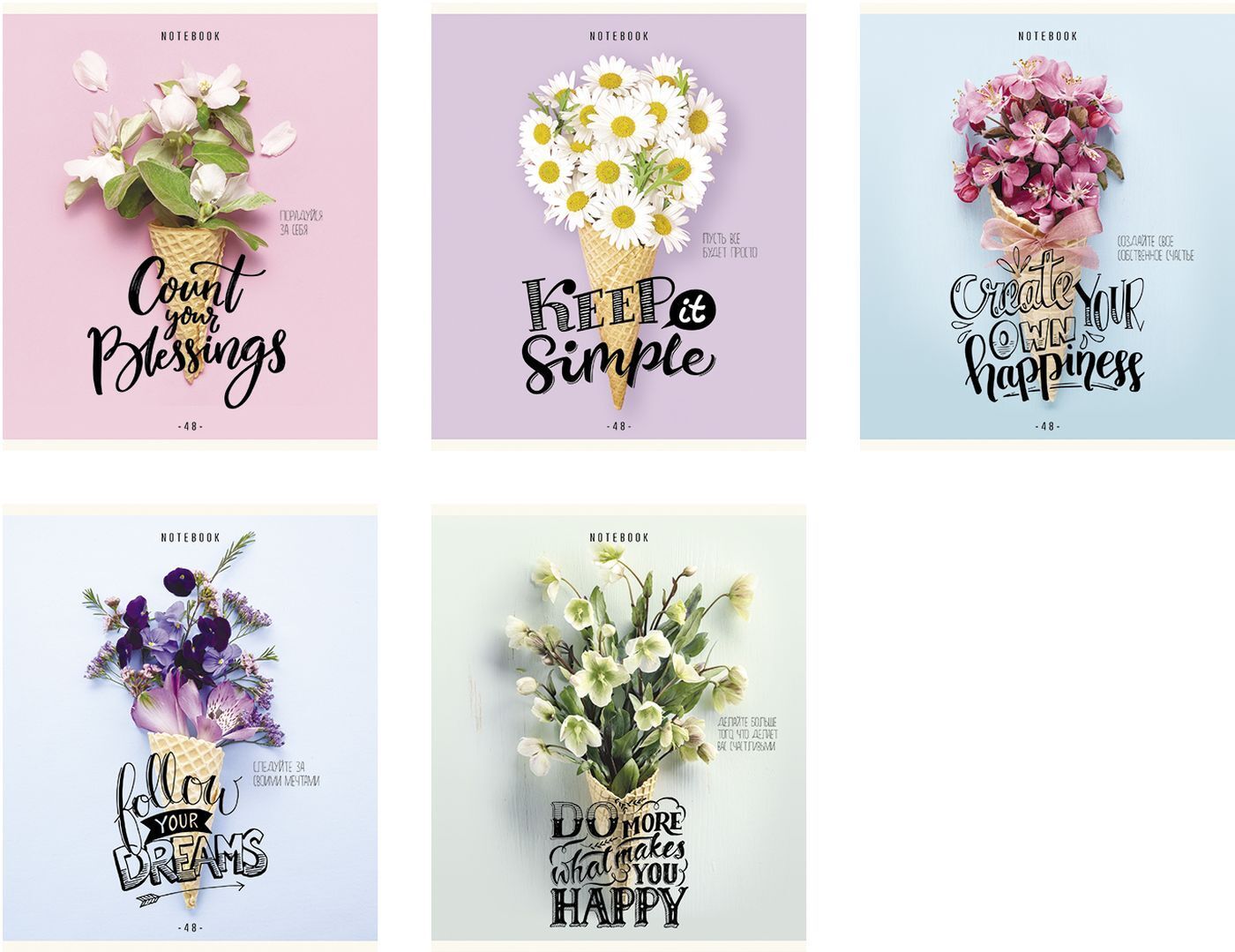 Тетрадь общая ПЗБМ, Вкусный букет, клетка, А5, скрепка, премиум, 48 листов, 5 штук