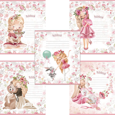 Тетрадь ПЗБМ общая, Звери Ми-Ми-Ми, 27026, 48 листов, формат А5, 5 шт, разноцветный