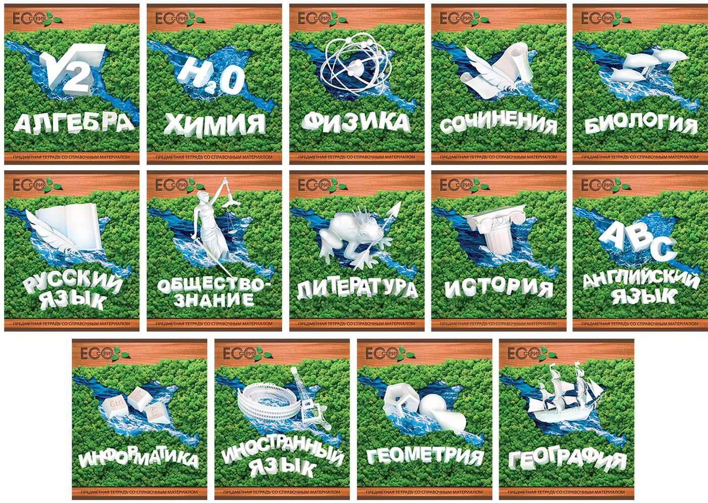 Комплект тетрадей тематических ПЗБМ 3D-ЭКО, A5, в клетку, 48 листов, 14 шт