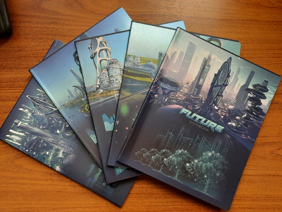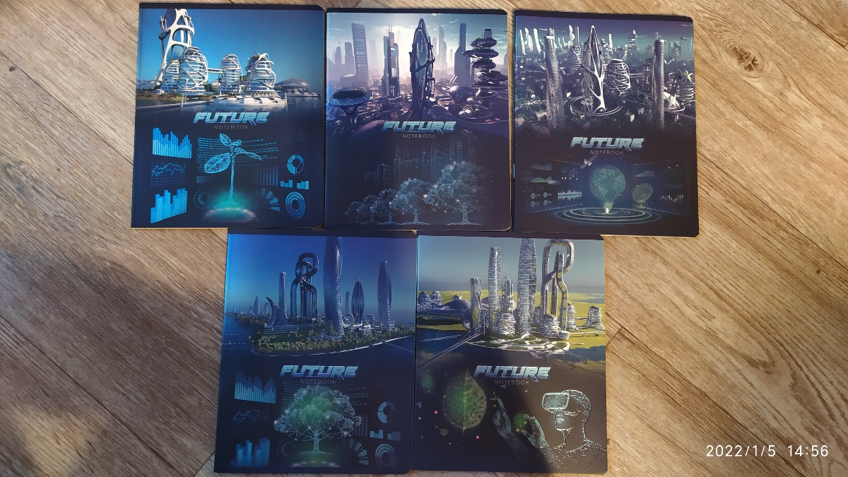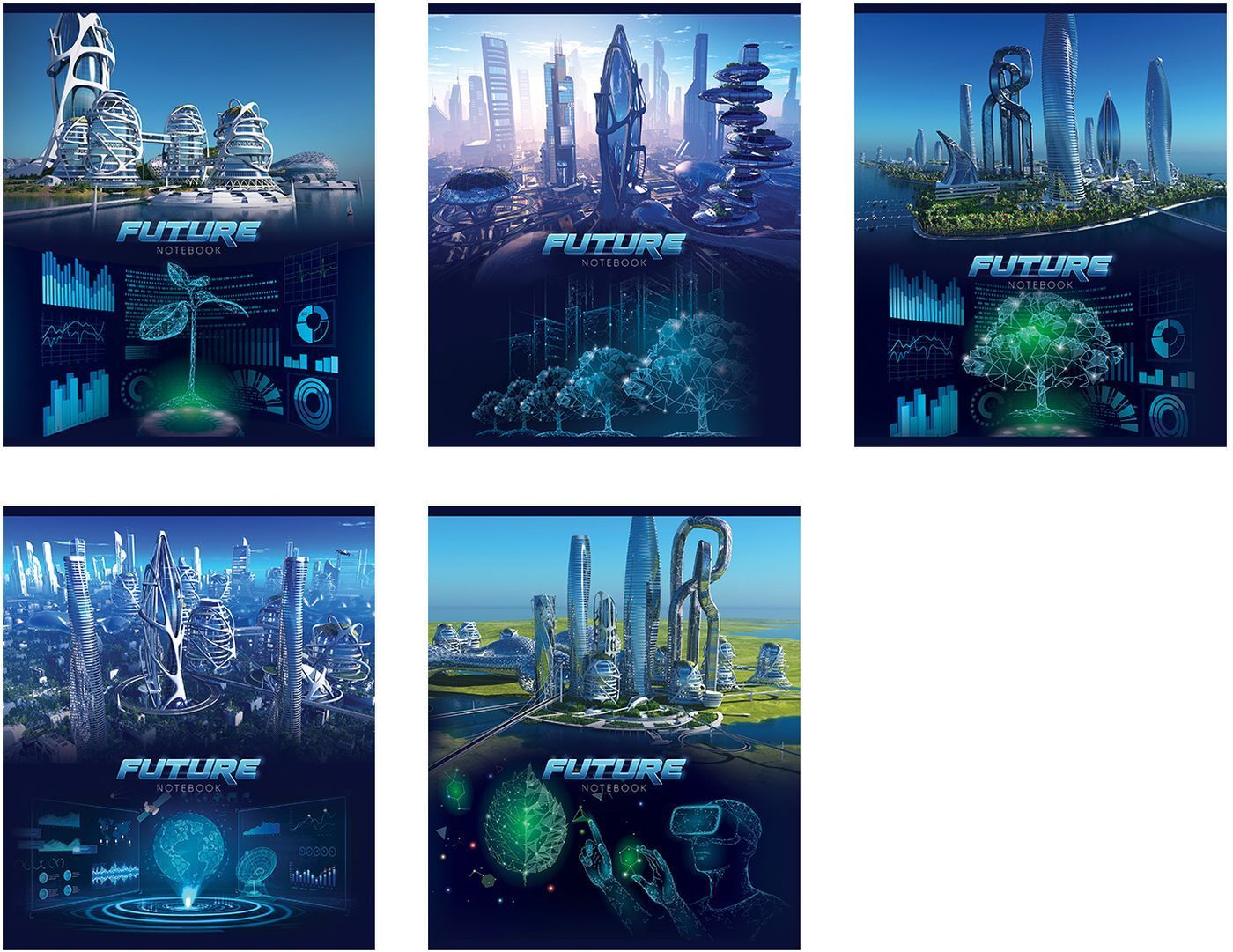 Тетрадь общая ПЗБМ, Города будущего, клетка, А5, скрепка, премиум, 48 листов, 5 штук