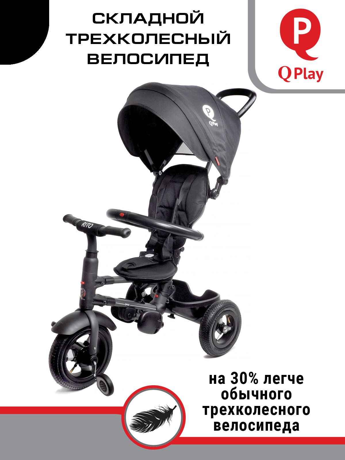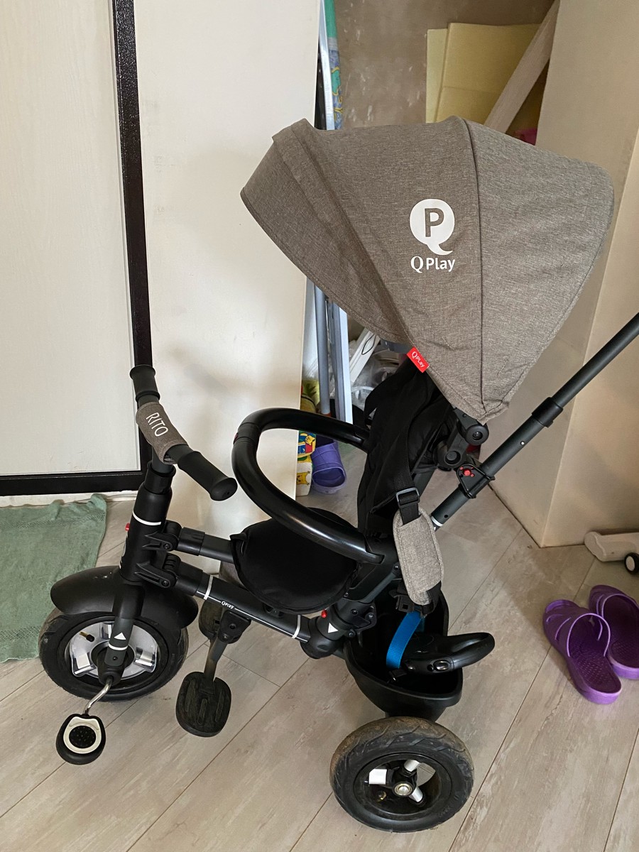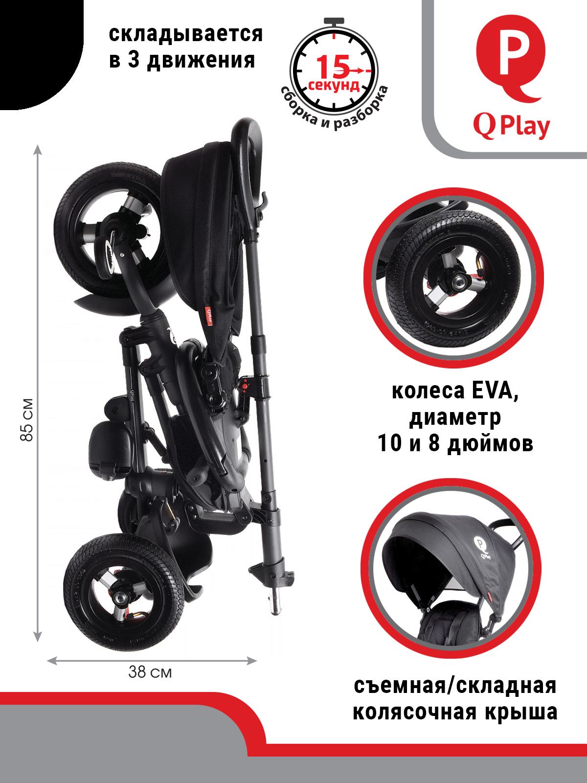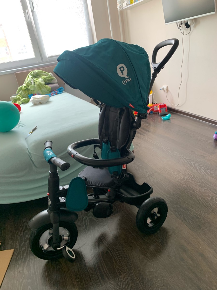 ВЕЛОСИПЕД ТРЕХКОЛЕСНЫЙ Q PLAY, колеса EVA, складывается, родительская ручка, козырек
