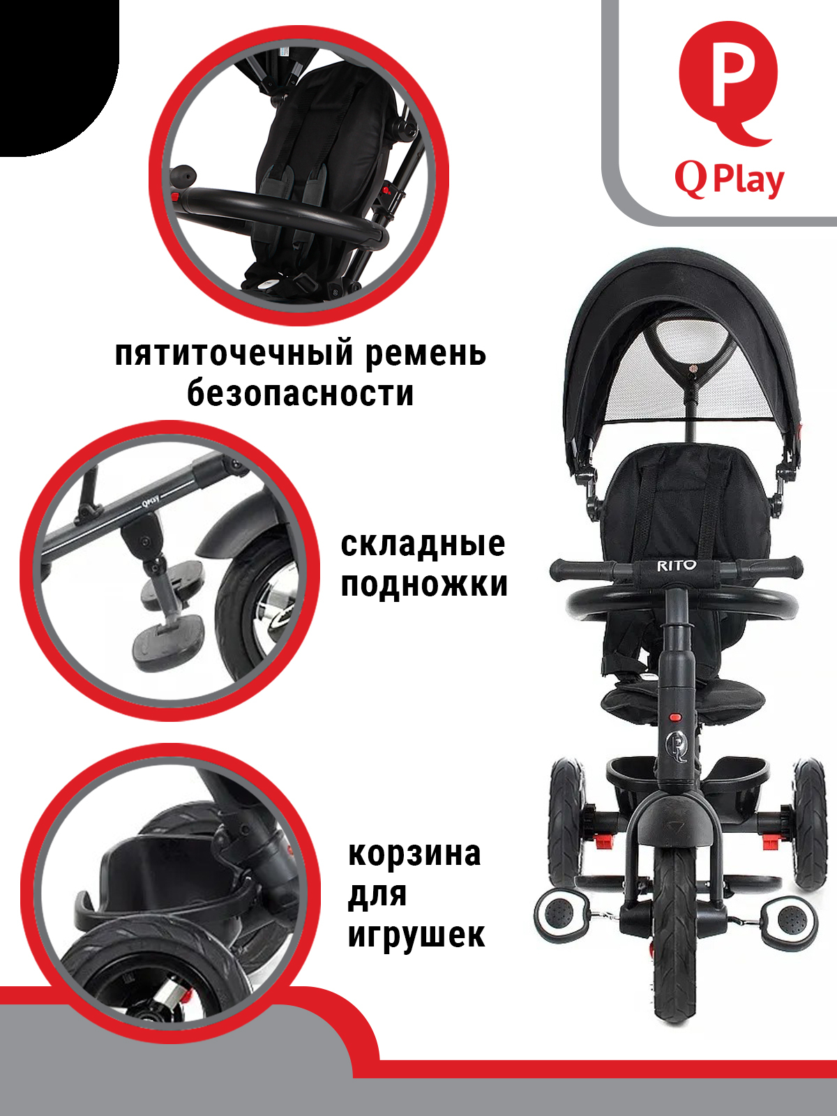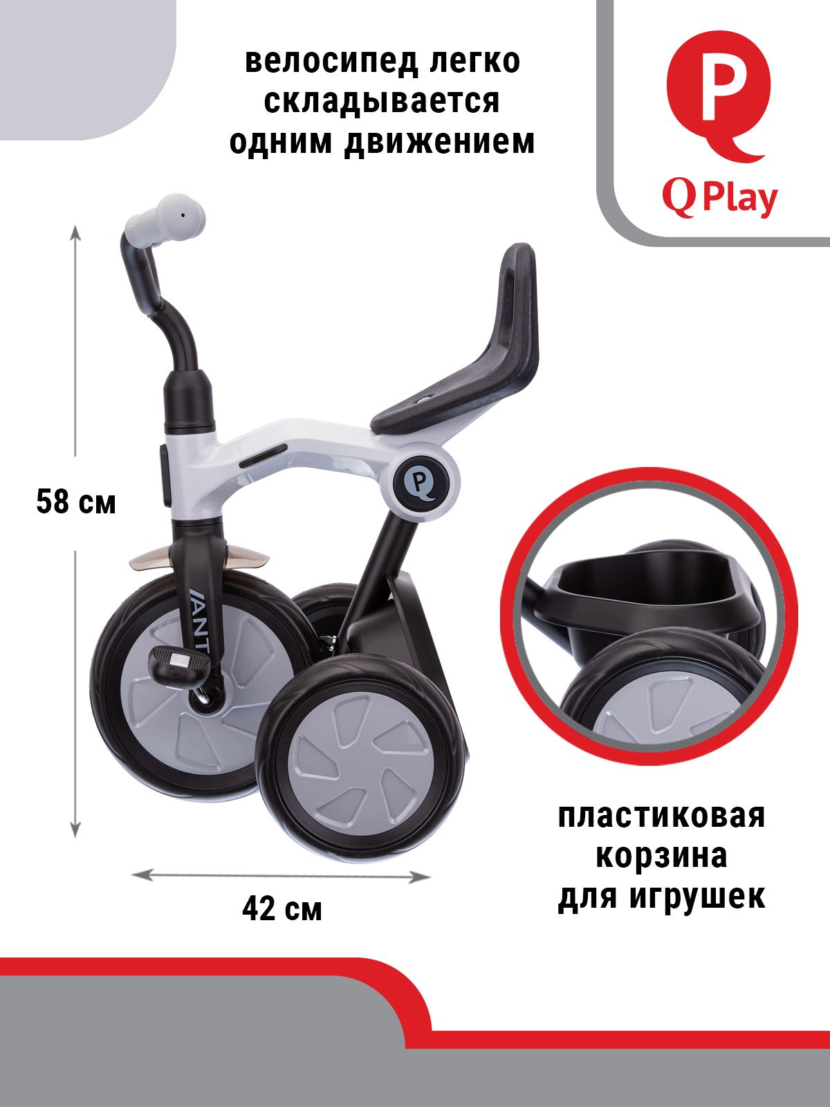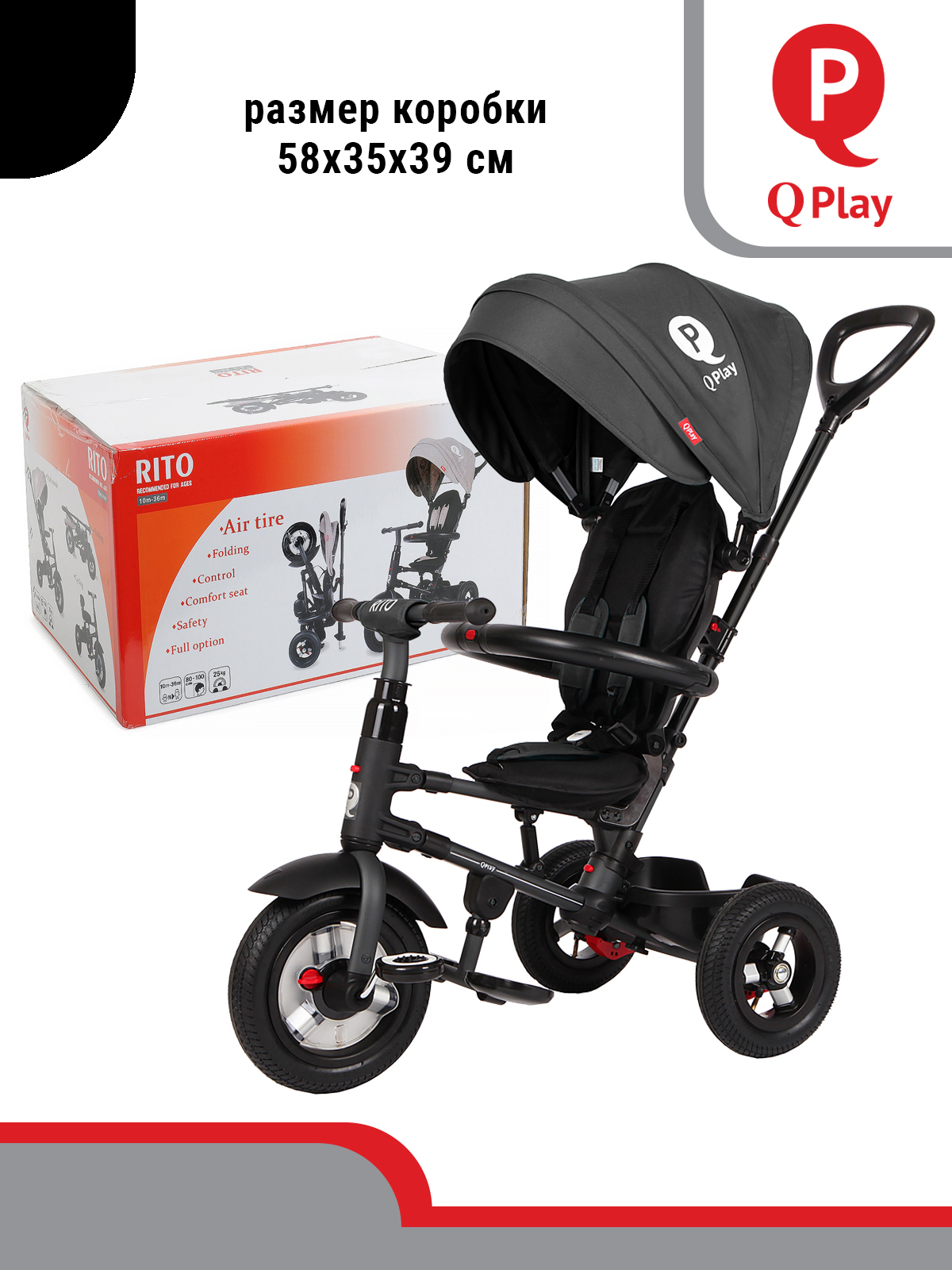 ВЕЛОСИПЕД ТРЕХКОЛЕСНЫЙ Q PLAY, колеса EVA, складывается, родительская ручка, козырек