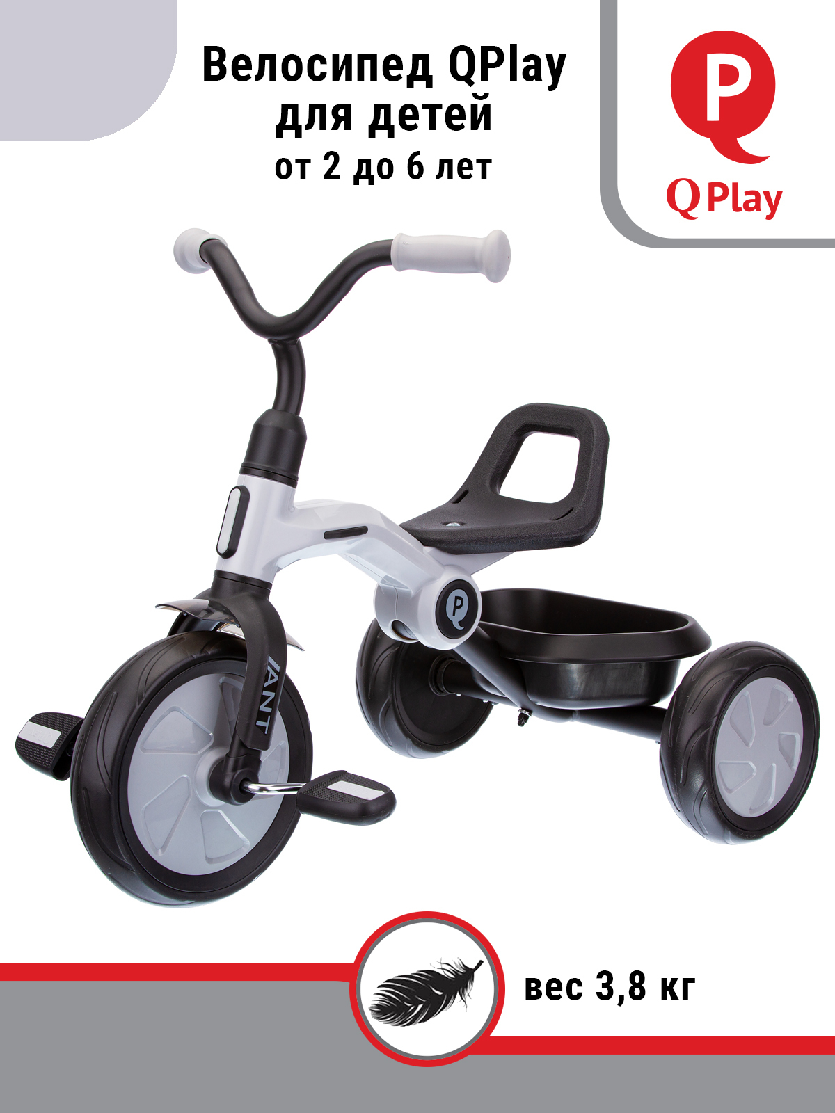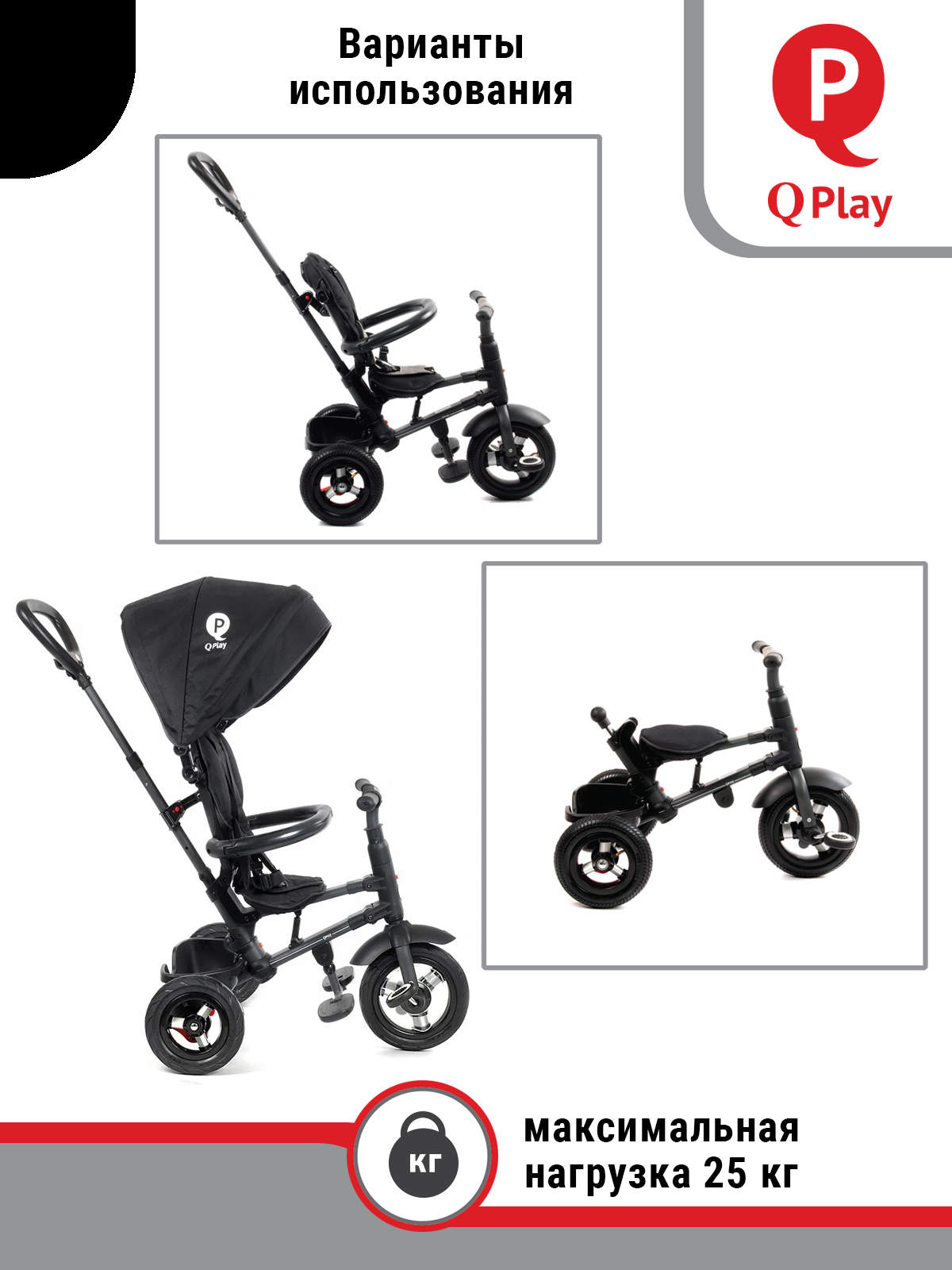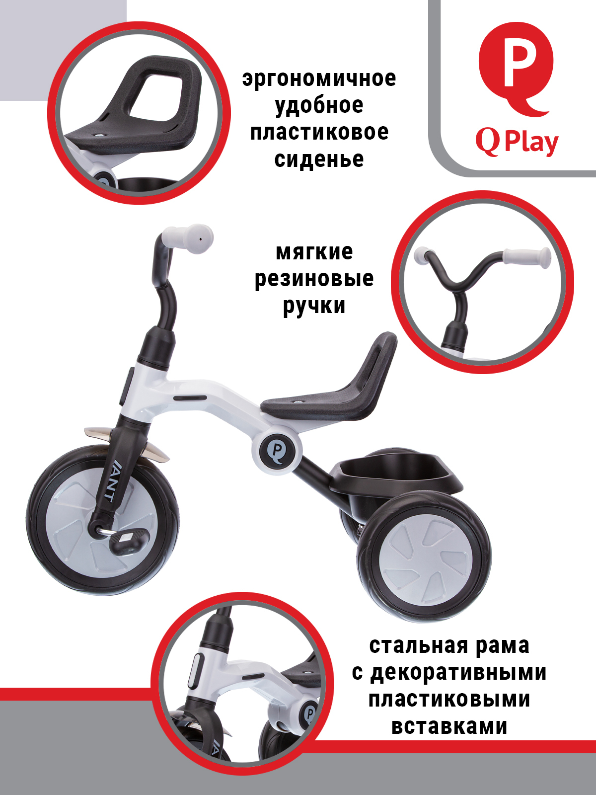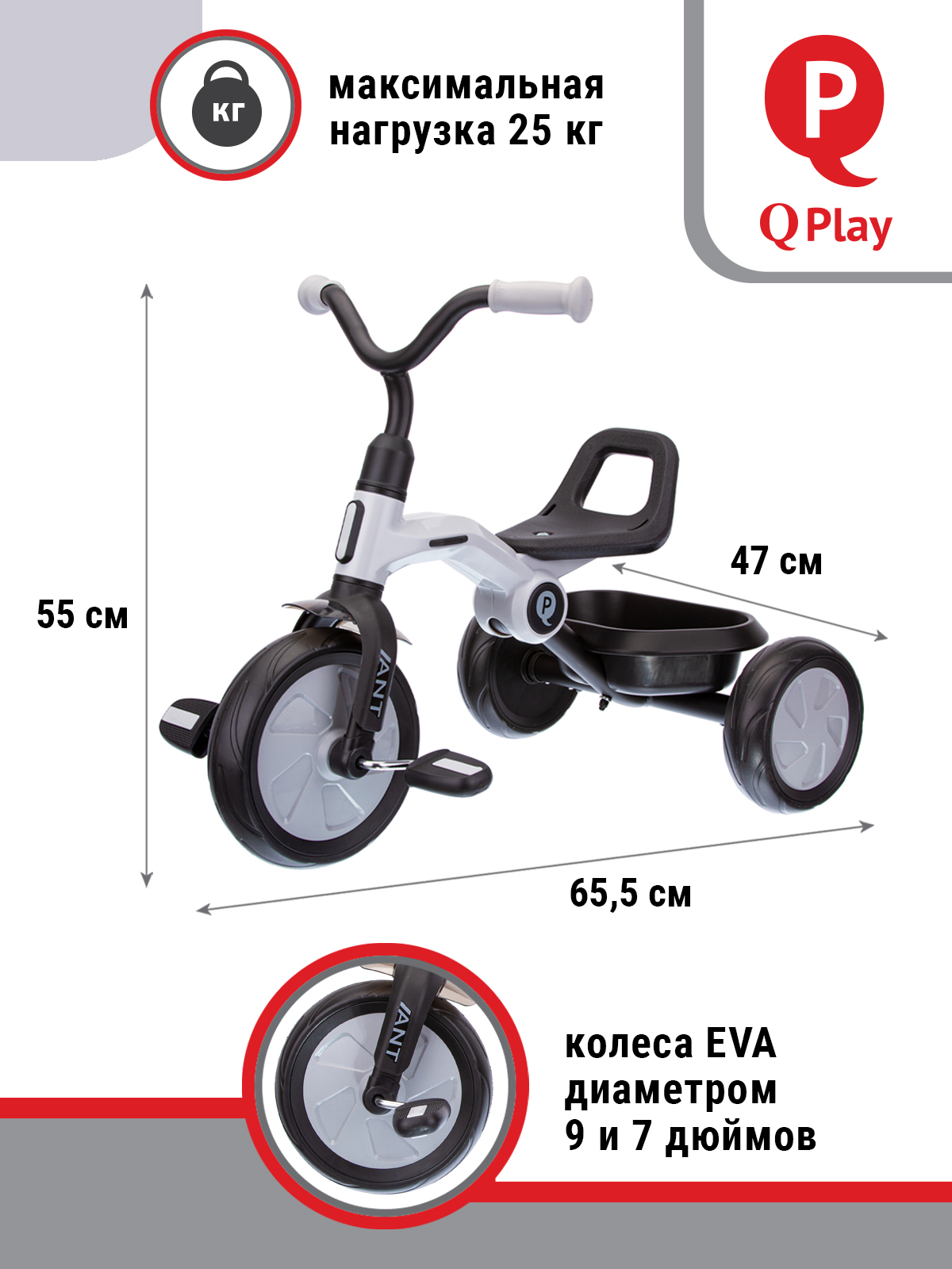 ВЕЛОСИПЕД ТРЕХКОЛЕСНЫЙ Q PLAY, колеса EVA, складывается, родительская ручка, козырек