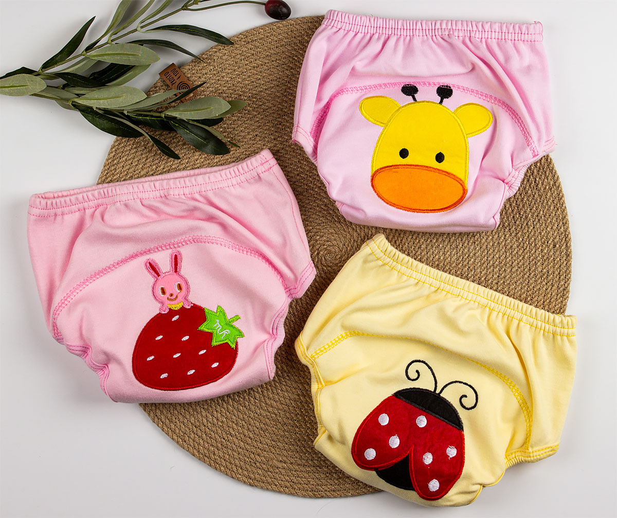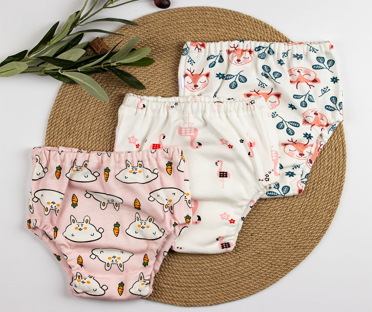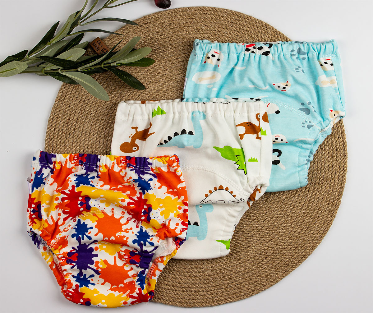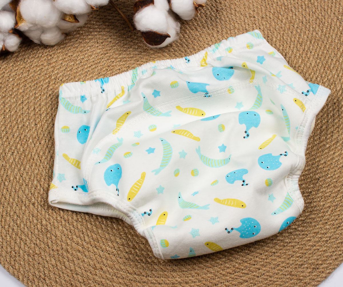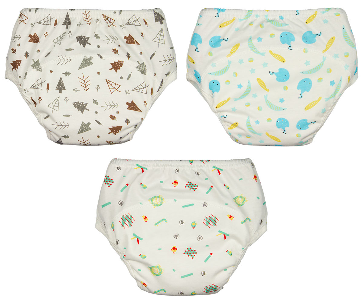 Трусики для приучения к горшку Qianquhui, Серые и коричневые елочки рыбки буквы, набор 3 шт, хлопок. Размер XL.
