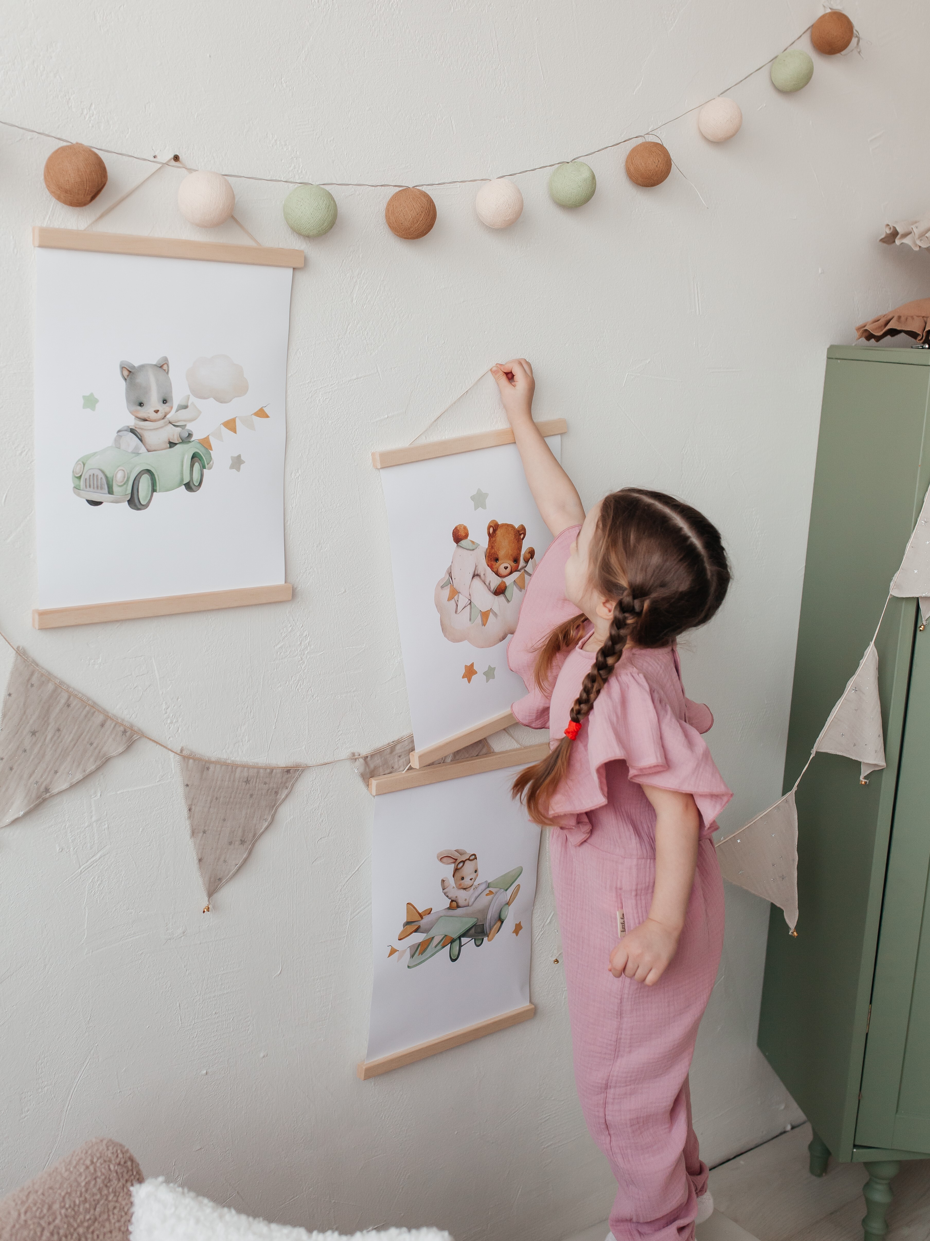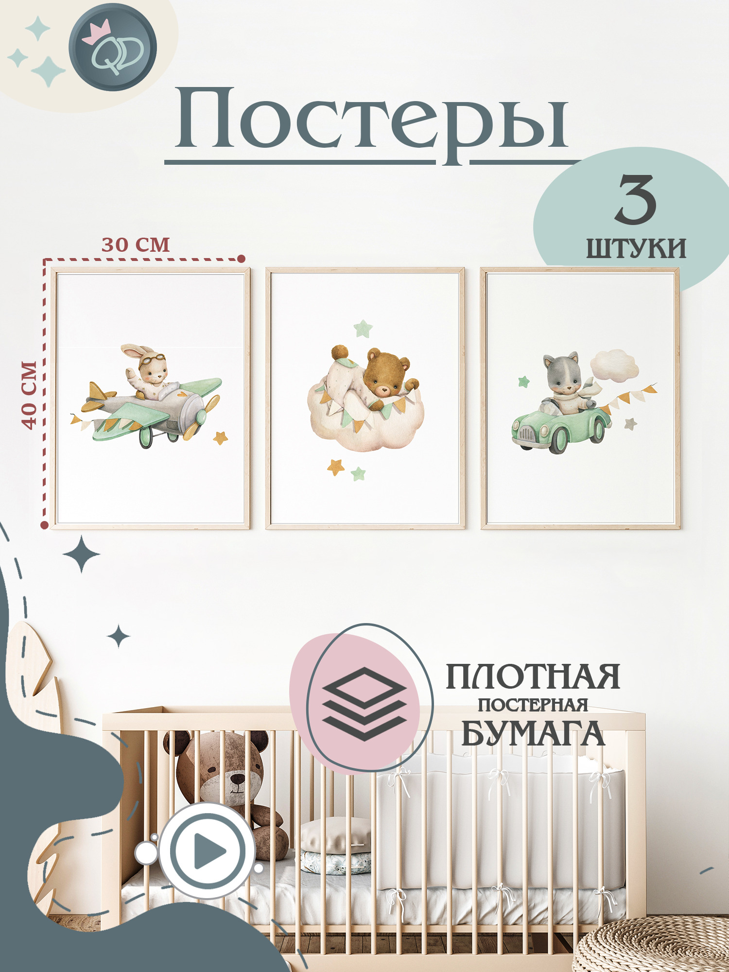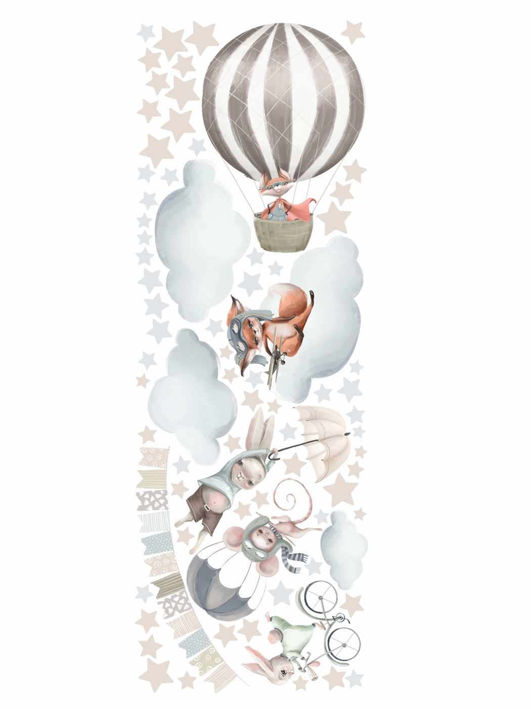 Интерьерные наклейки в детскую комнату "Медведи на шарах", настенный декор, фотообои, наклейка на стену