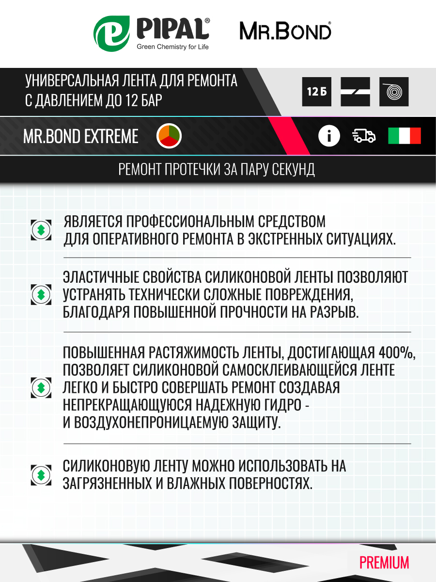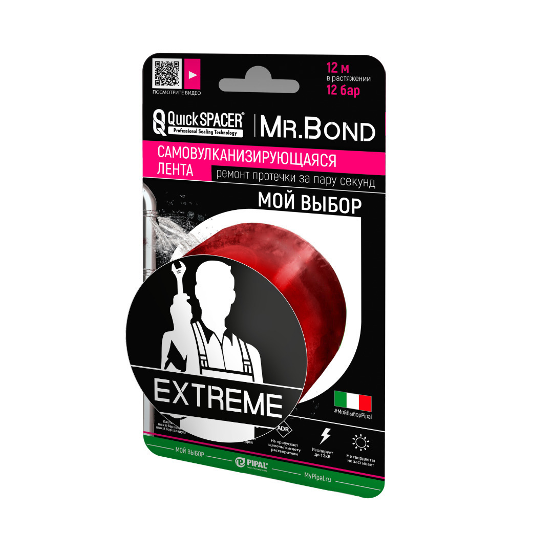 QS Mr.Bond EXTREME XL Лента универсальная для оперативного ремонта течи, 50мм*3м*0,5мм, бордовый