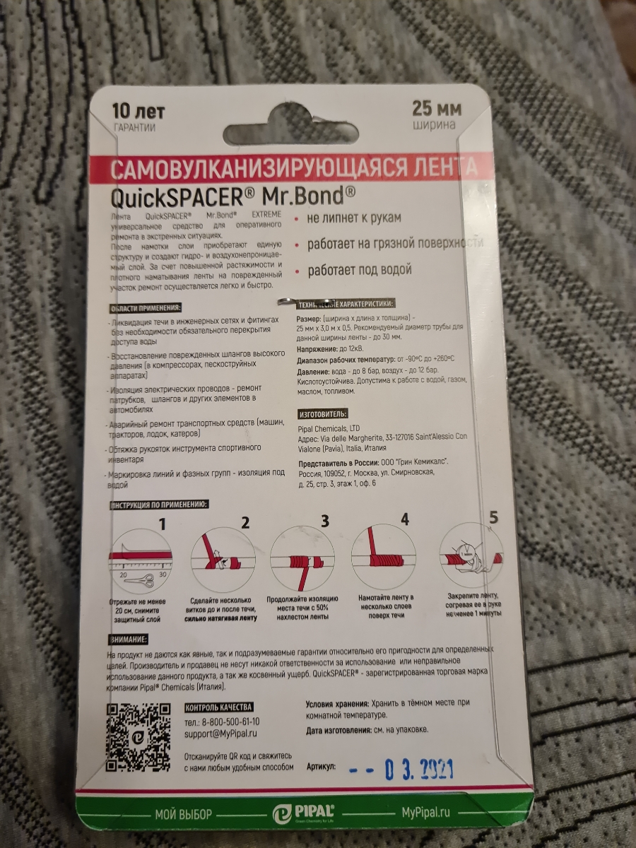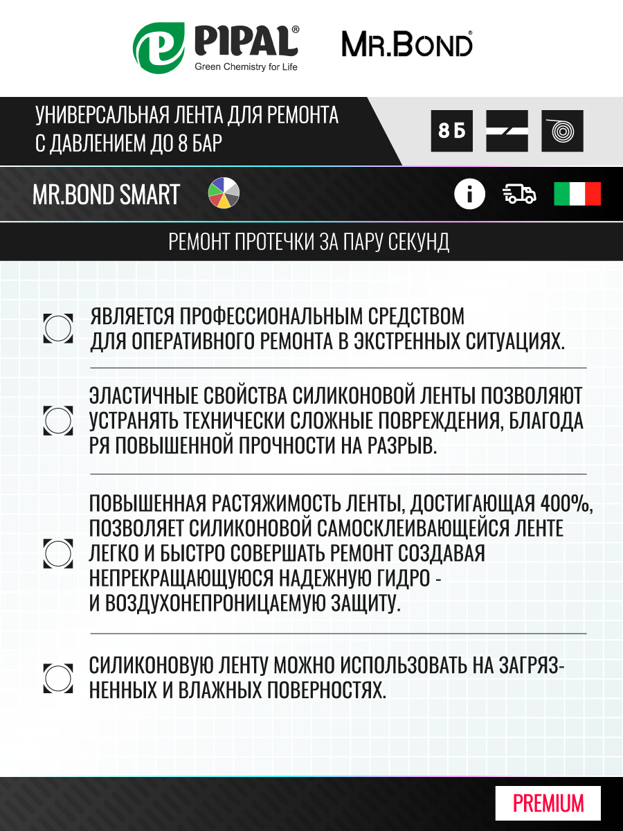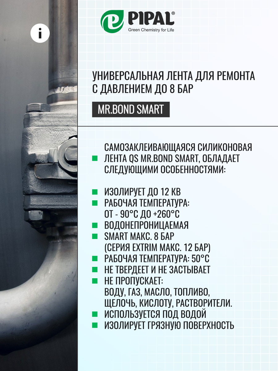 QS Mr.Bond SMART Лента универсальная для оперативного ремонта течи, 25,4мм*3м*0,5мм, зеленый 2 шт.