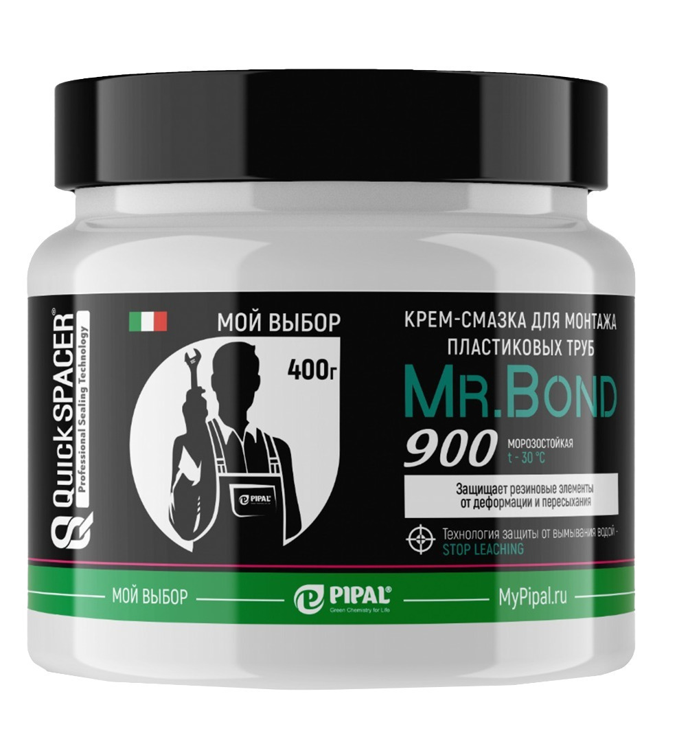 QS Mr.Bond 900 Крем-смазка для монтажа пластиковых труб ПВХ, 400г 2 шт.