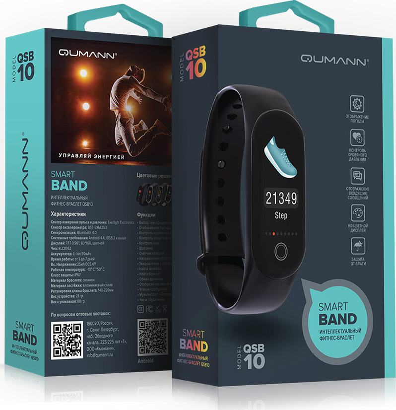 Фитнес-браслет Qumann QSB 12 Blue+Black, синий, черный
