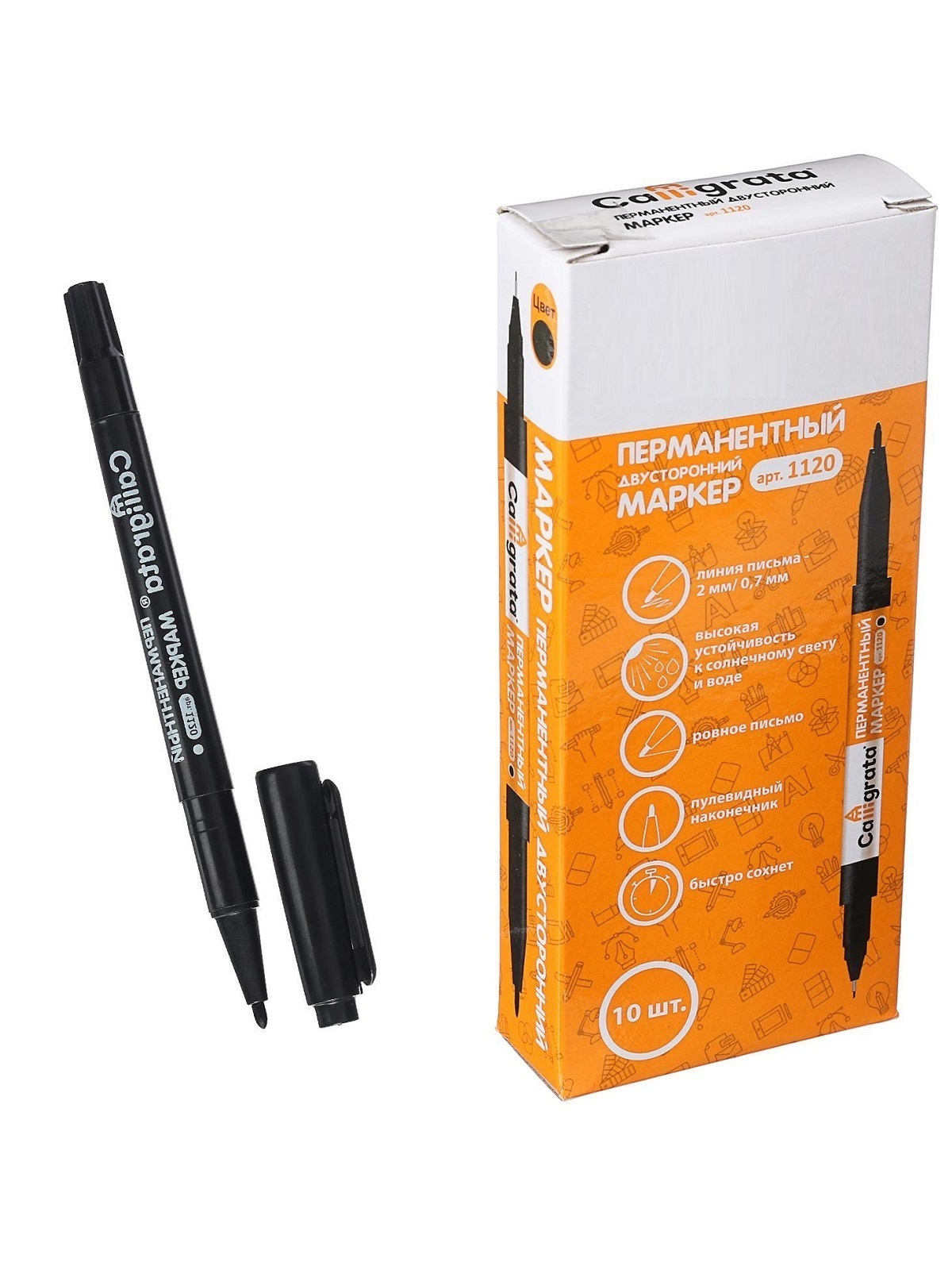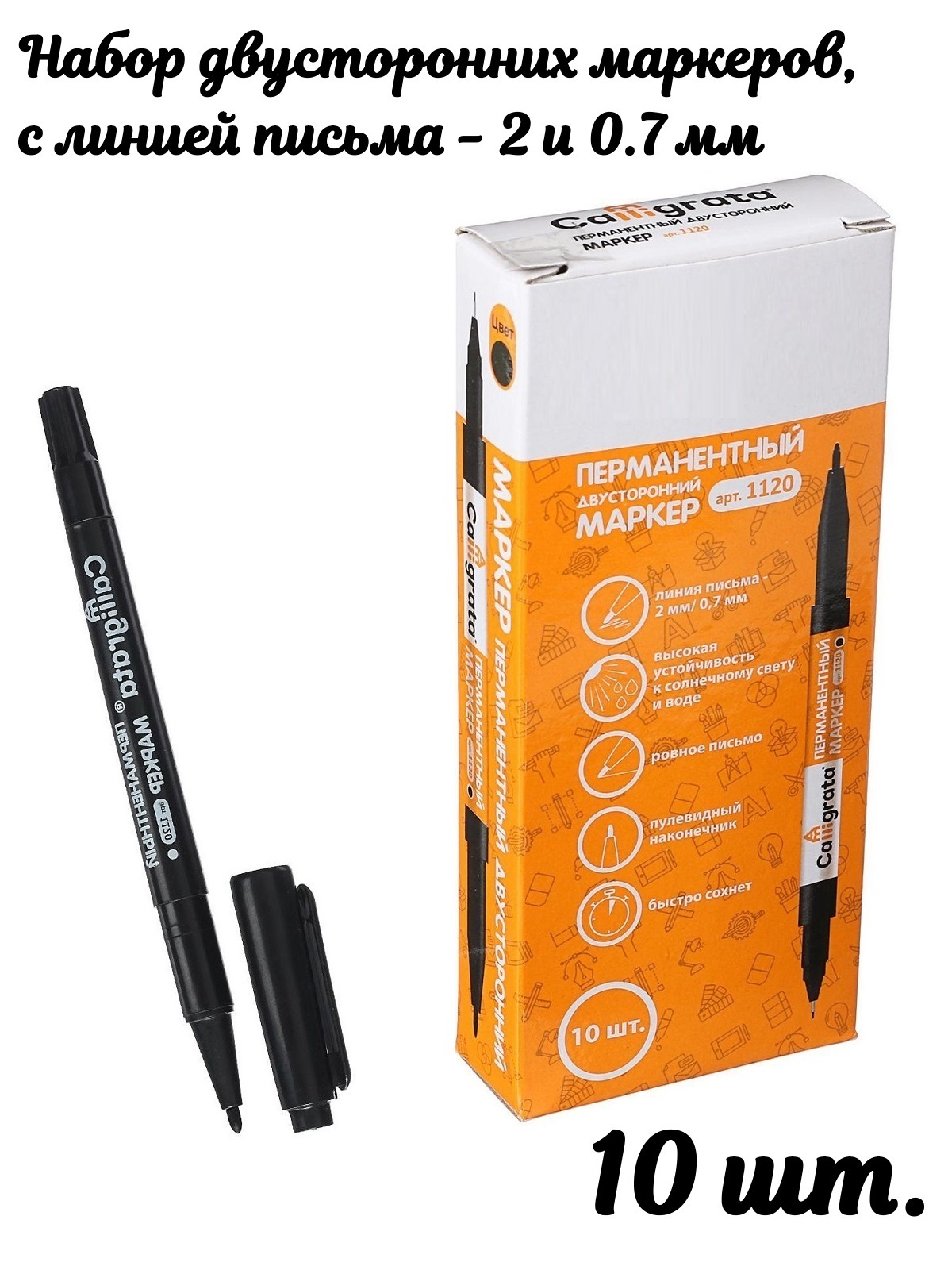 Маркеры двусторонние для письма на любых поверхностях, перманентные, черные, 10 штук, 2/0.7 мм