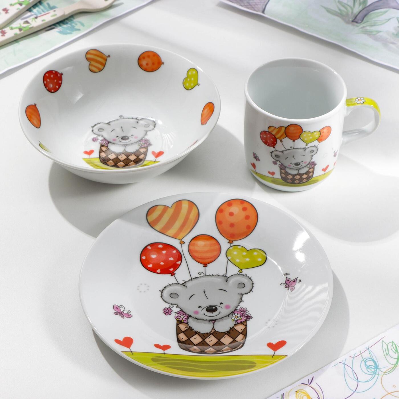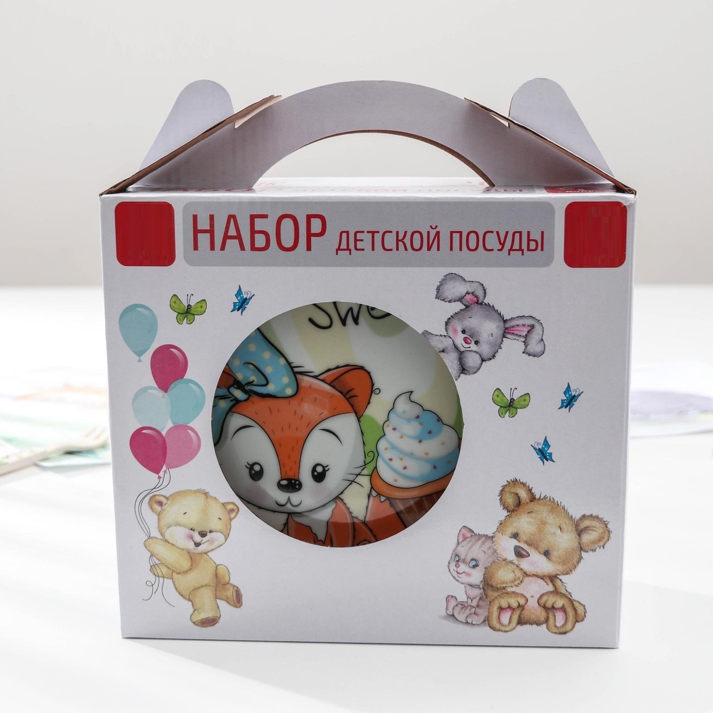 Набор посуды для детей, Лисенок, 3 предмета: кружка 230 мл, миска 400 мл, тарелка 18 см