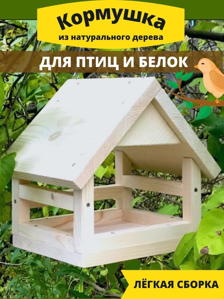 Кормушка для птиц - натуральное дерево / Конструктор для сборки с детьми / Кормушка для птиц