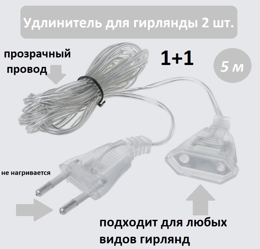 Удлинители 2 шт. Удлинитель для светодиодных гирлянд / Переходник для гирлянд 2 шт. 5 м