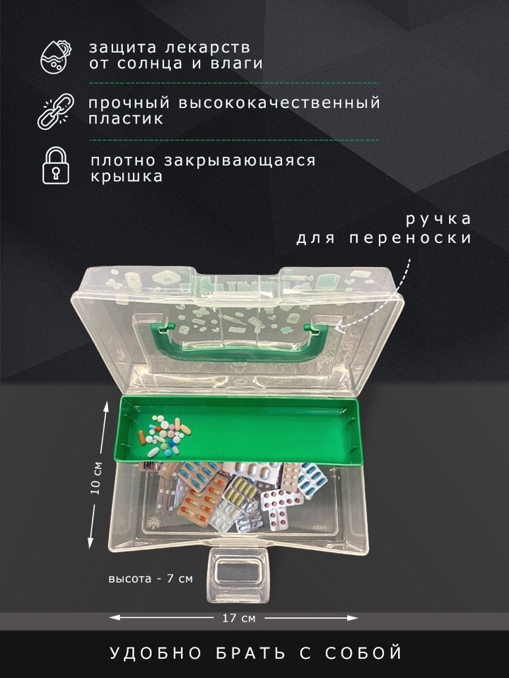 Аптечка / Аптечка для дома / Органайзер для хранения лекарств / Домашняя аптечка / Контейнер. 0,8 л