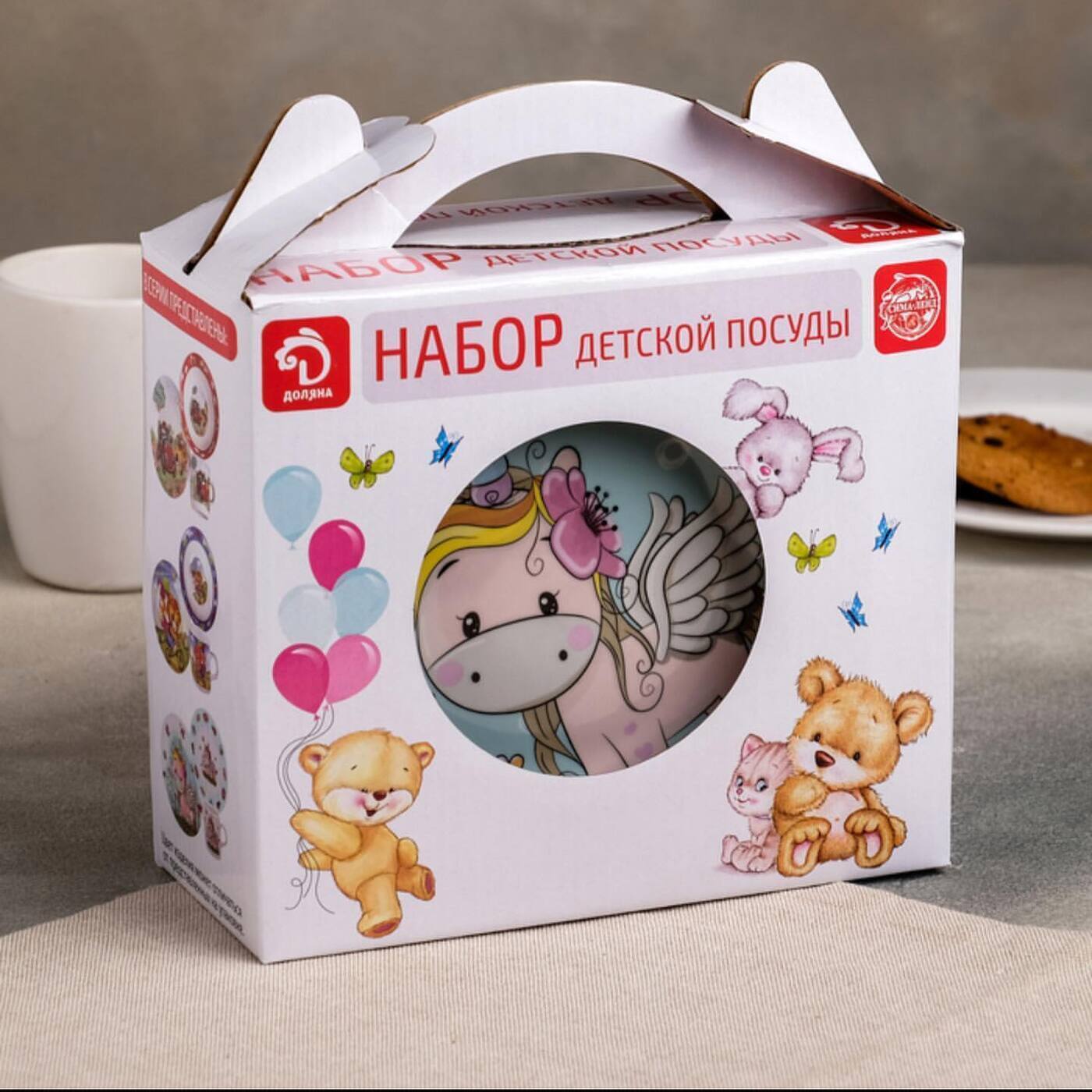 Набор посуды для детей, Доляна, Единорожка, 3 предмета: кружка 230 мл, миска 400 мл, тарелка 18 см