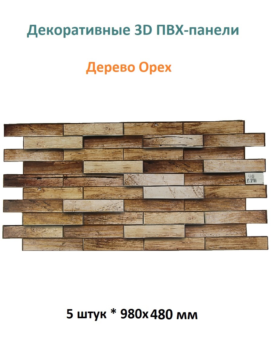 Листовая панель ПВХ Дерево Орех 3D 980*480 ммм ( 5 шт)