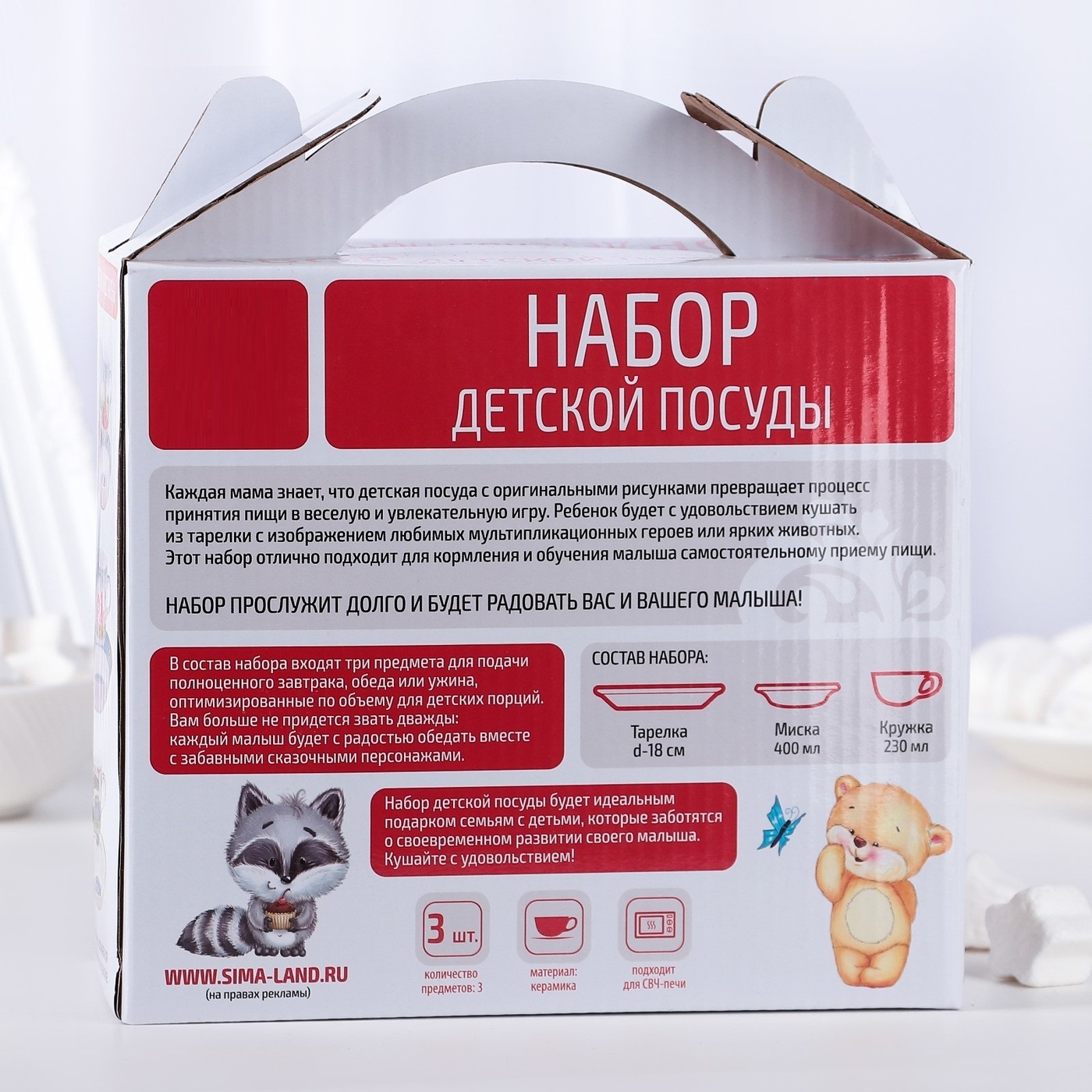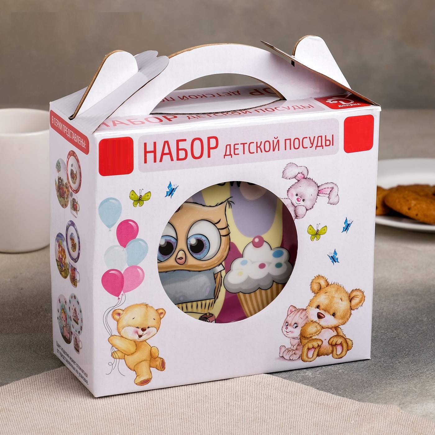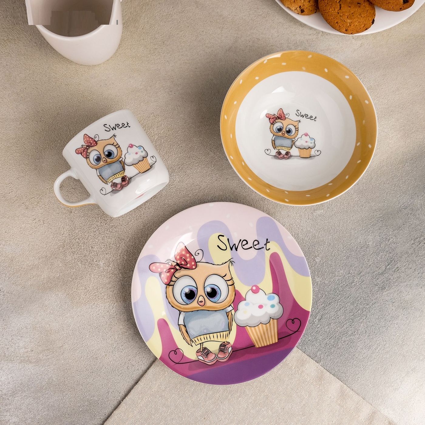 Набор посуды для детей, Совенок, 3 предмета: кружка 230 мл, миска 400 мл, тарелка 18 см