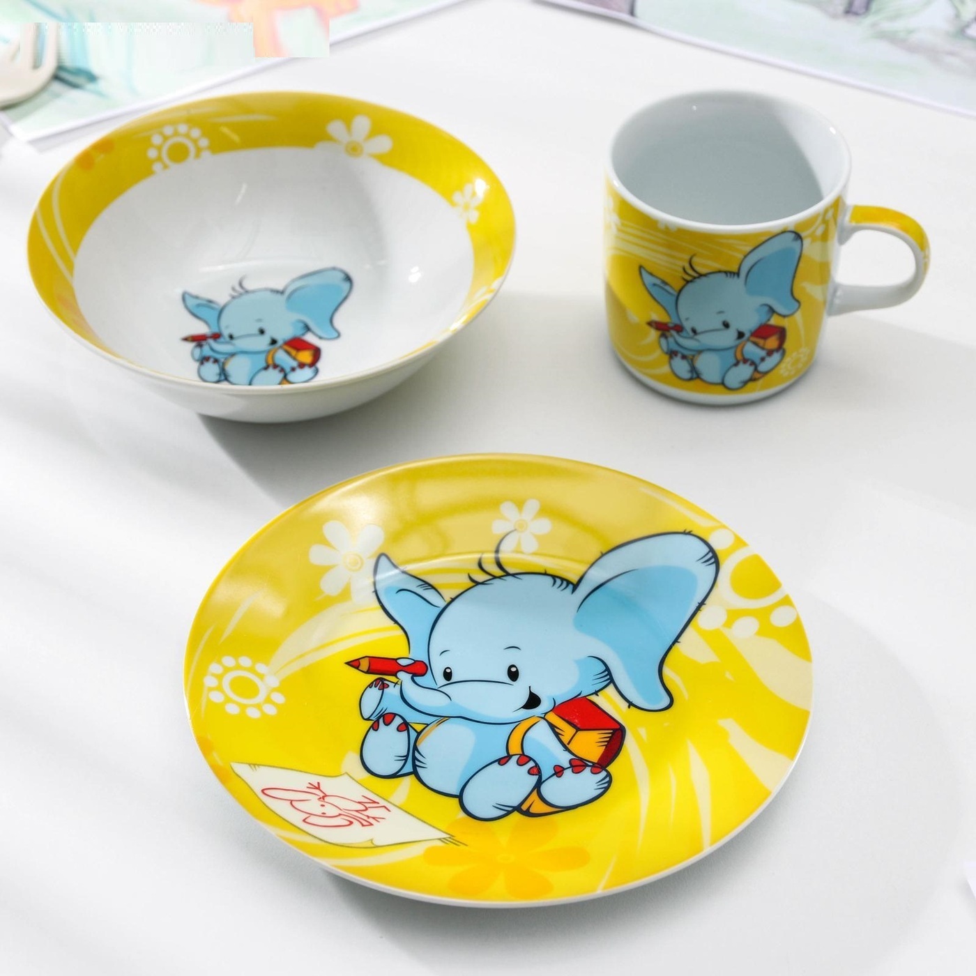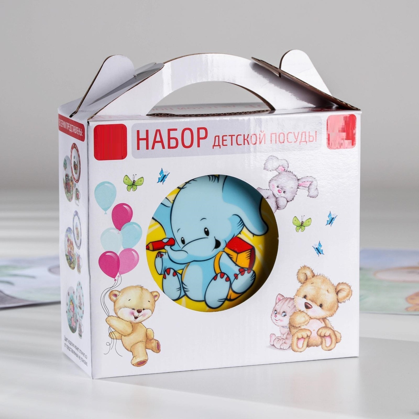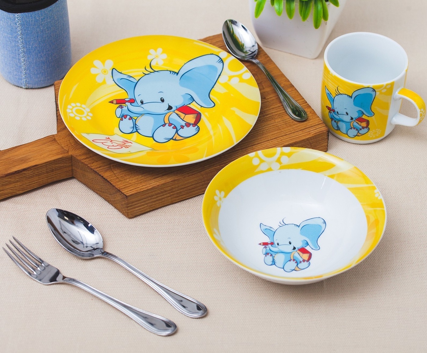 Набор посуды для детей, Слоненок, 3 предмета: кружка 230 мл, миска 400 мл, тарелка 18 см