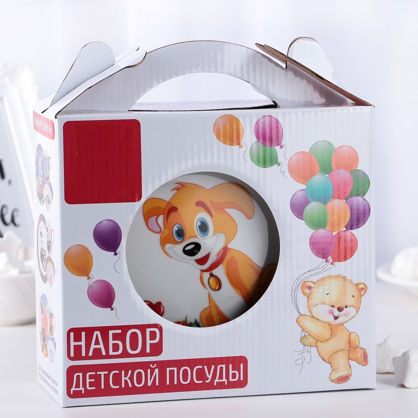 Набор посуды для детей, Лисенок, 3 предмета: кружка 230 мл, миска 400 мл, тарелка 18 см