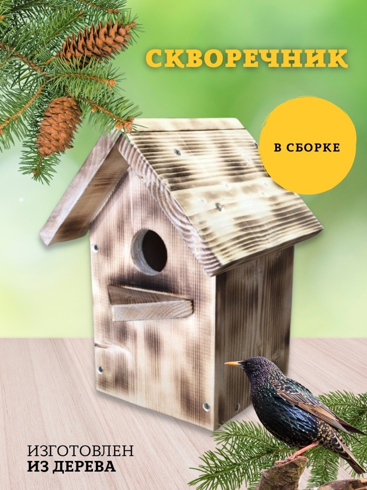 Скворечник / Кормушка / Скворечник в сборке / Кормушка деревянная 31,5х19,5х16 см.