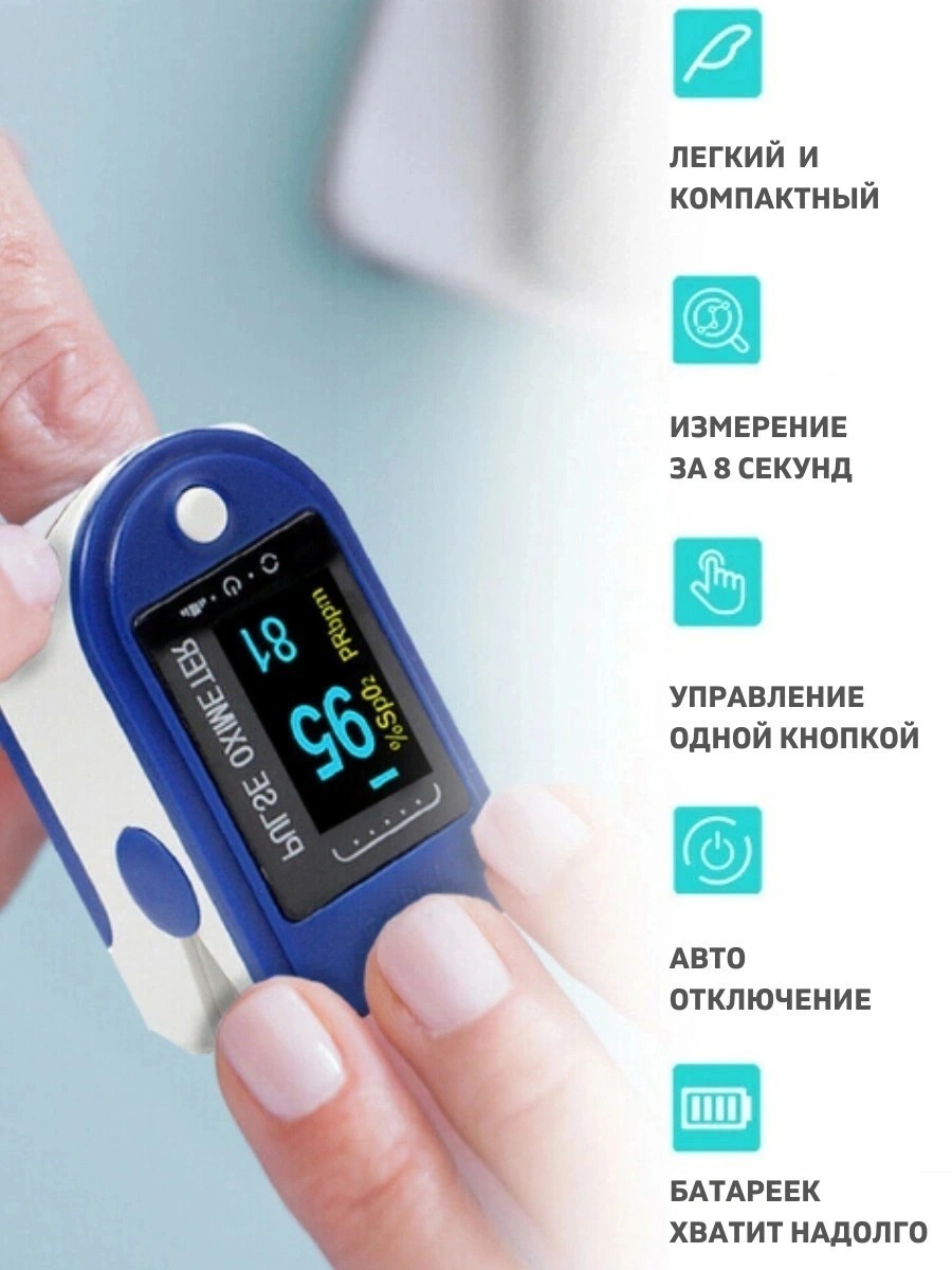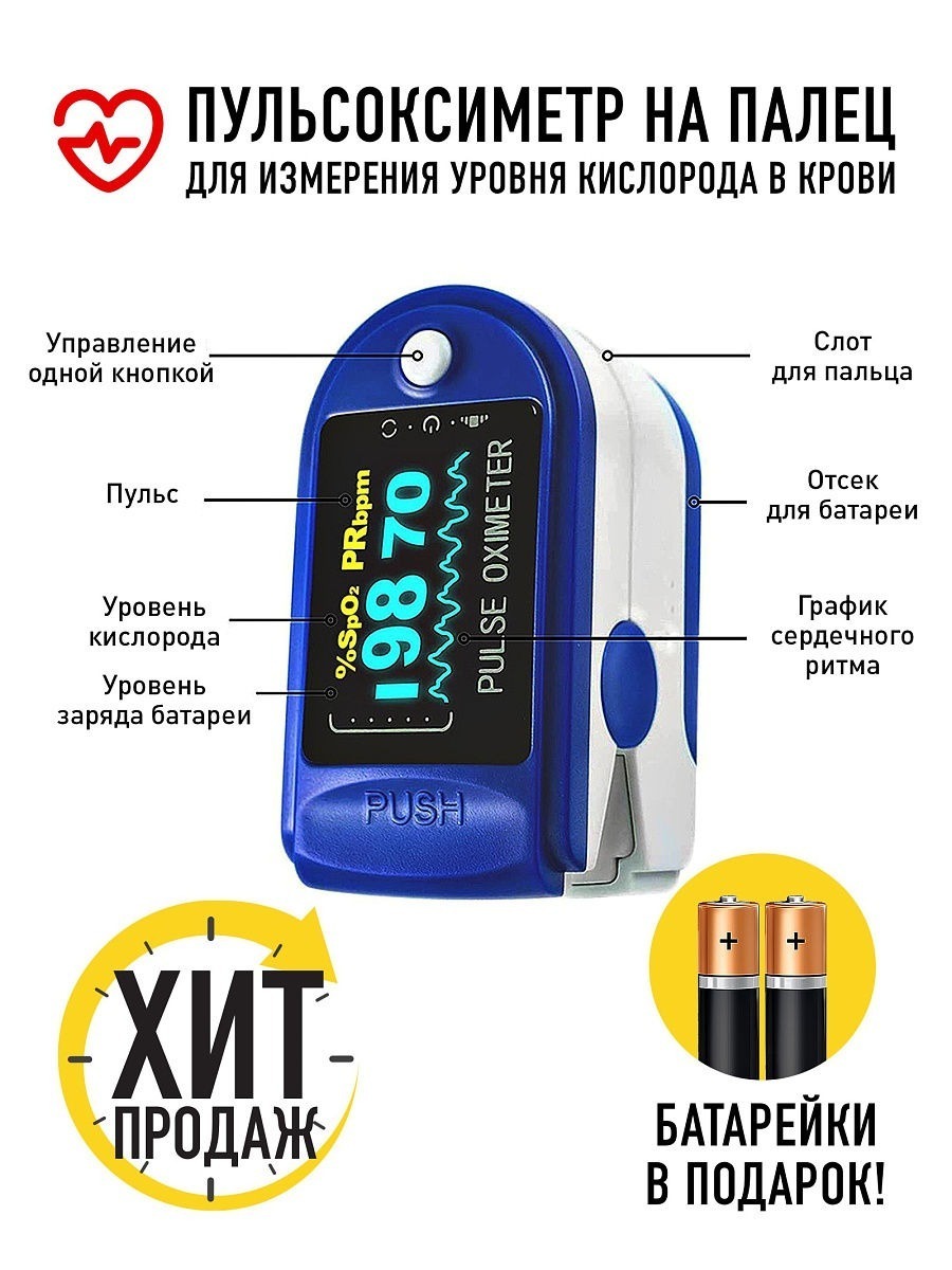Цифровой Пульсоксиметр, Батарейки в подарок, простая и надежная модель.