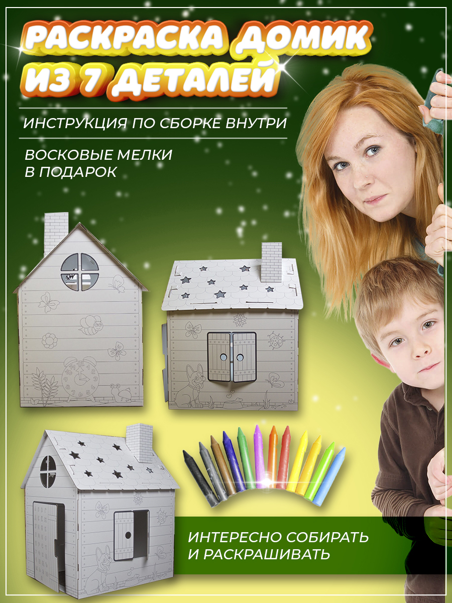 Детский Дом-раскраска, восковые мелки в подарок / Домик детский / Детский дом