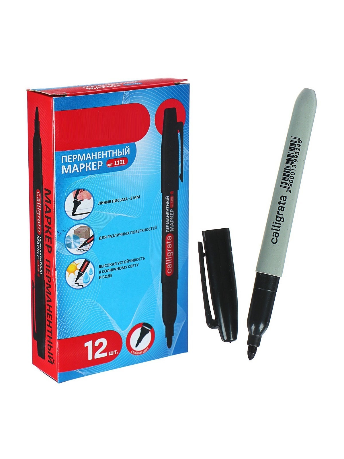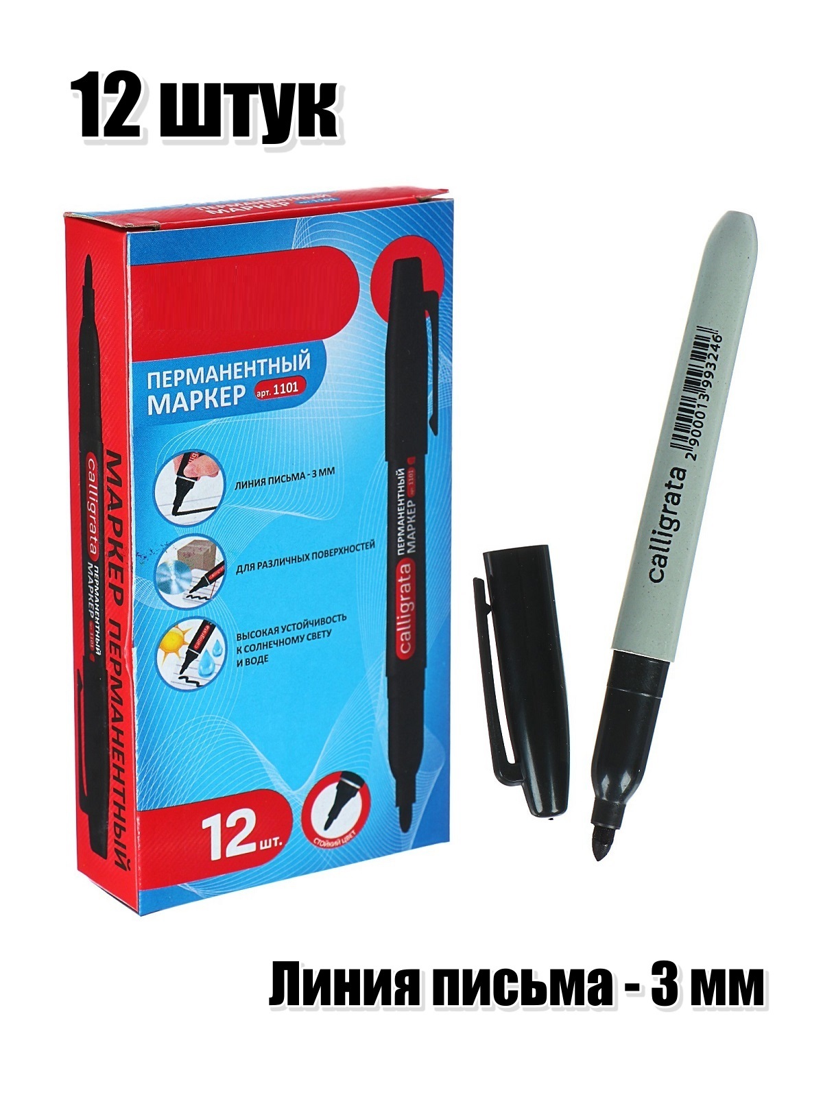 Маркеры перманентные, 12 штук, толщина - 3 мм, черные