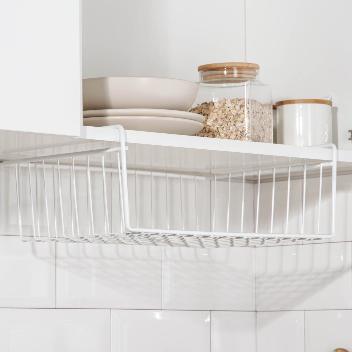 Корзина сетчатая навесная 400*260*110 мм, на полку шкафа 16 мм, цвет белый