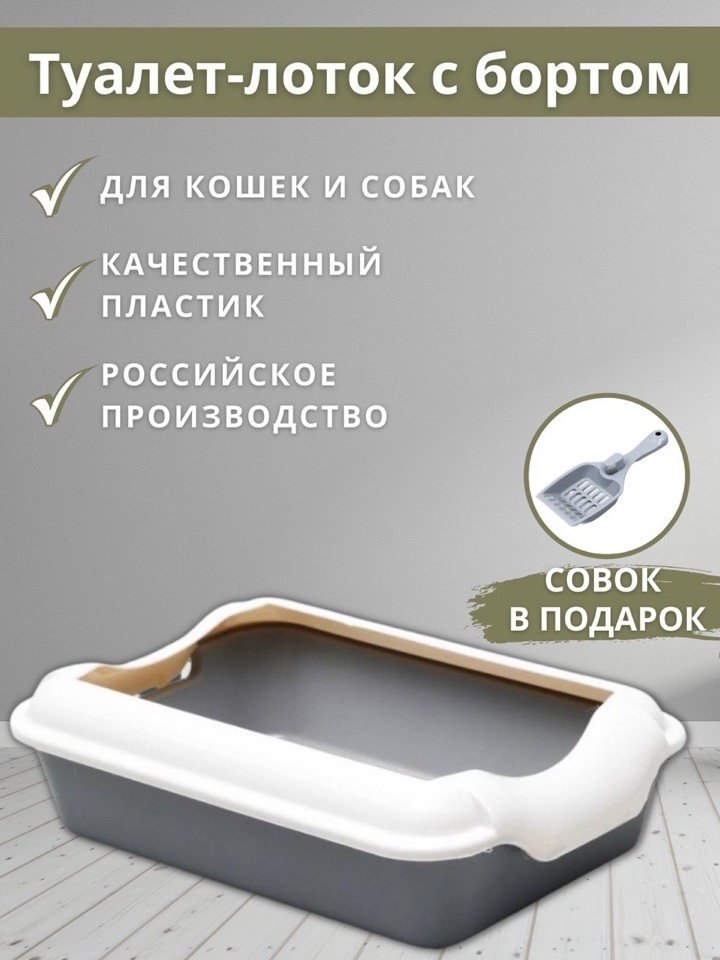 Туалет для кошек / лоток с бортом / лоток пластик / серый