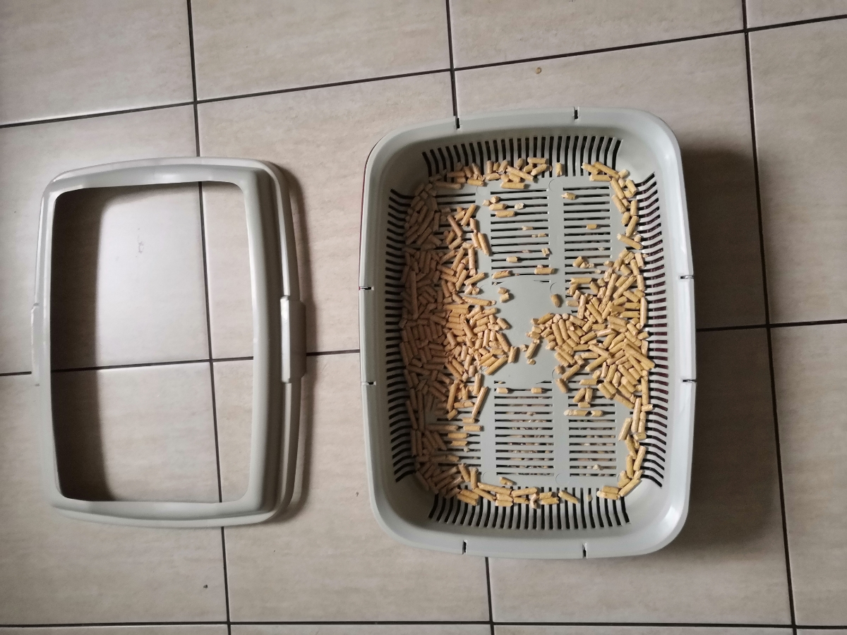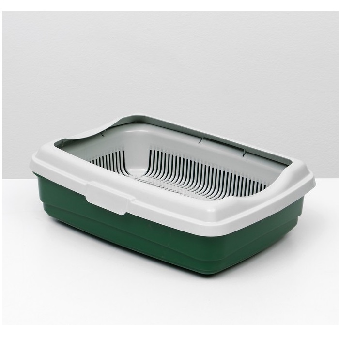 Лоток для кошек / туалет для животных / большой с решеткой, бортиком и совком, 43 х 33 х 12,5 см.